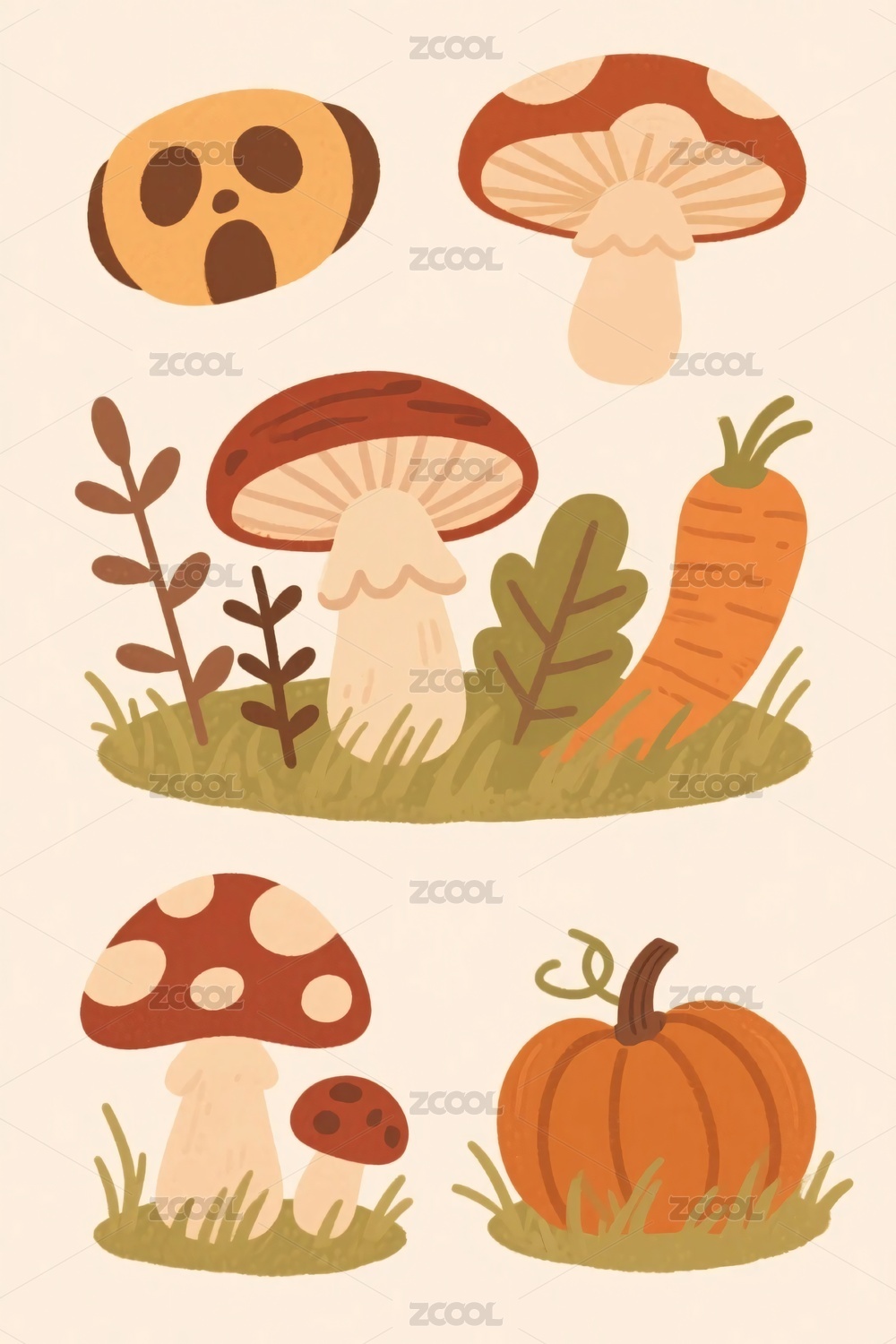 蔬菜,蘑菇,插画,边框,背景,模板,图案,装饰,手绘风,卡通