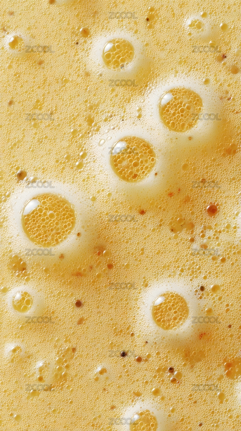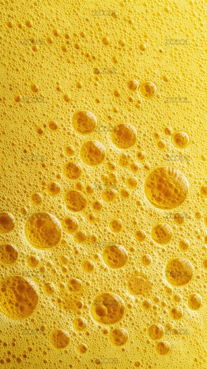 黄色泡沫表面的气泡特写