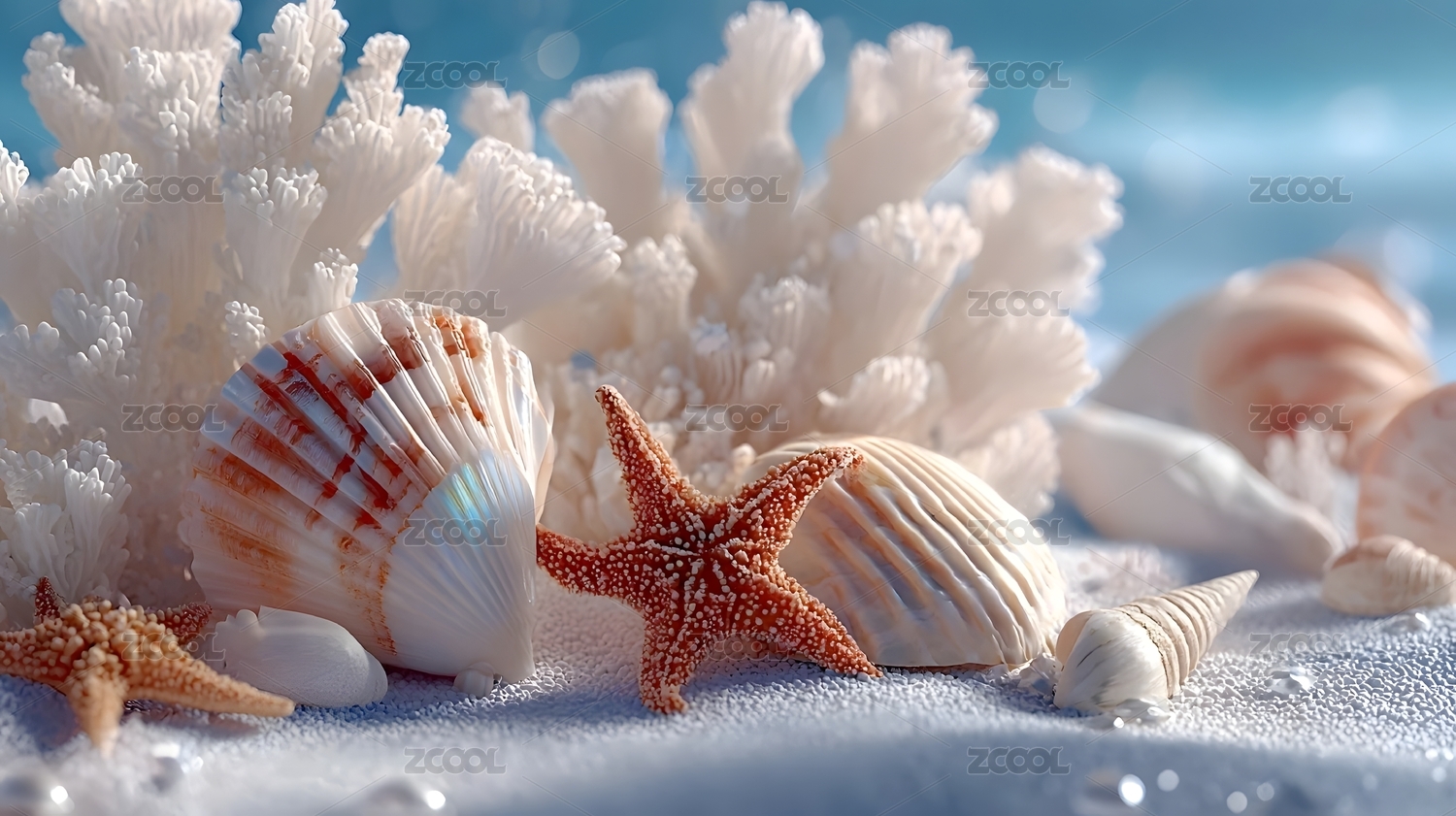 阳光,温暖,自然,静物,蓝色,清新,沙滩,贝壳,海洋,平静