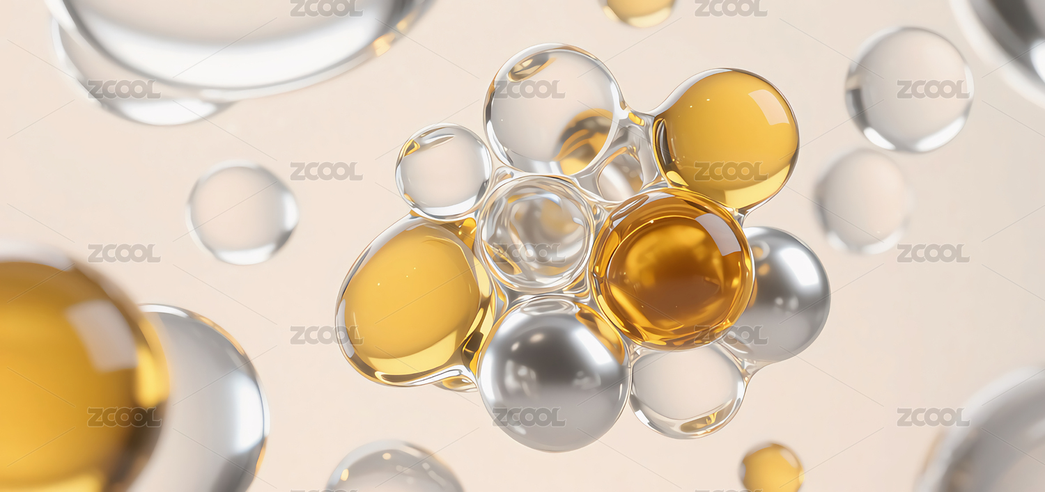 水分子,精华液,黄金,透明,水珠,晶莹剔透,背景,美妆,护肤,渐变