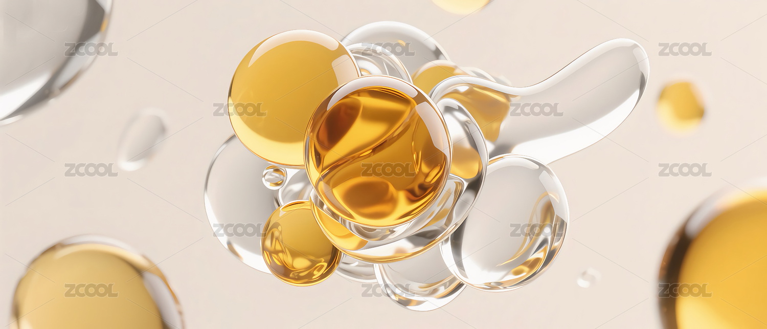 水分子,精华液,黄金,透明,水珠,晶莹剔透,背景,美妆,护肤,渐变