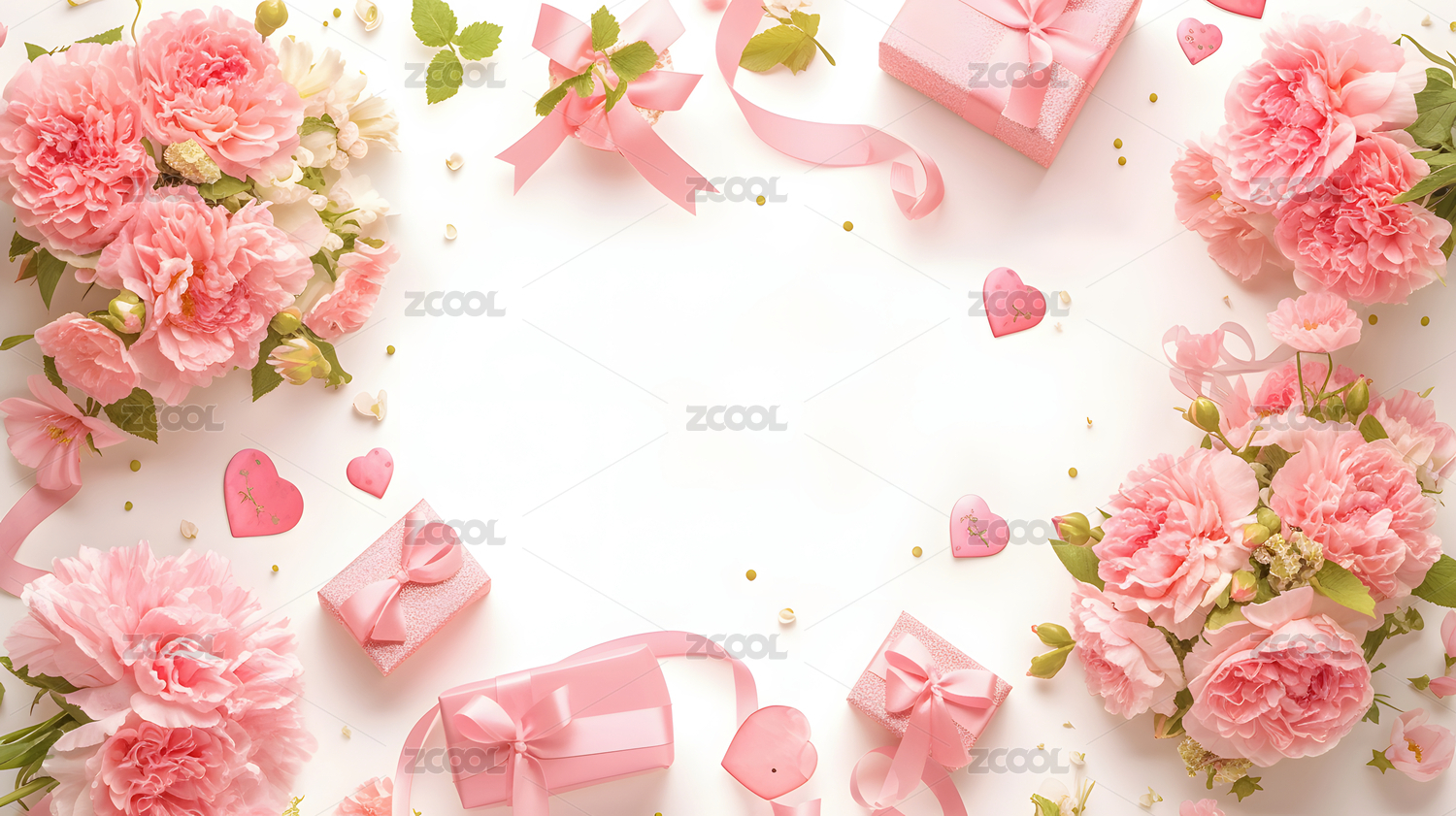 粉色康乃馨与礼物的浪漫组合