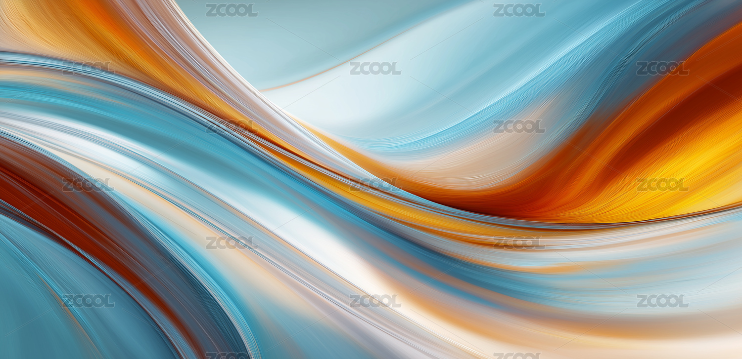 蓝橙色彩交织成流动线条呈现艺术动感视觉