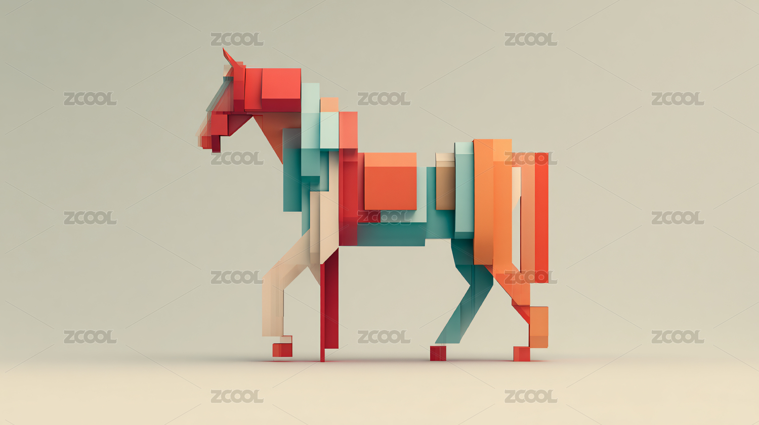 几何拼接彩色马造型
