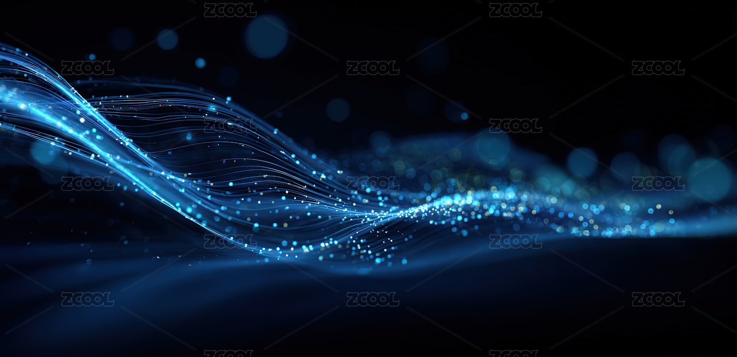 黑色背景下被照亮的蓝色光纤的特写镜头