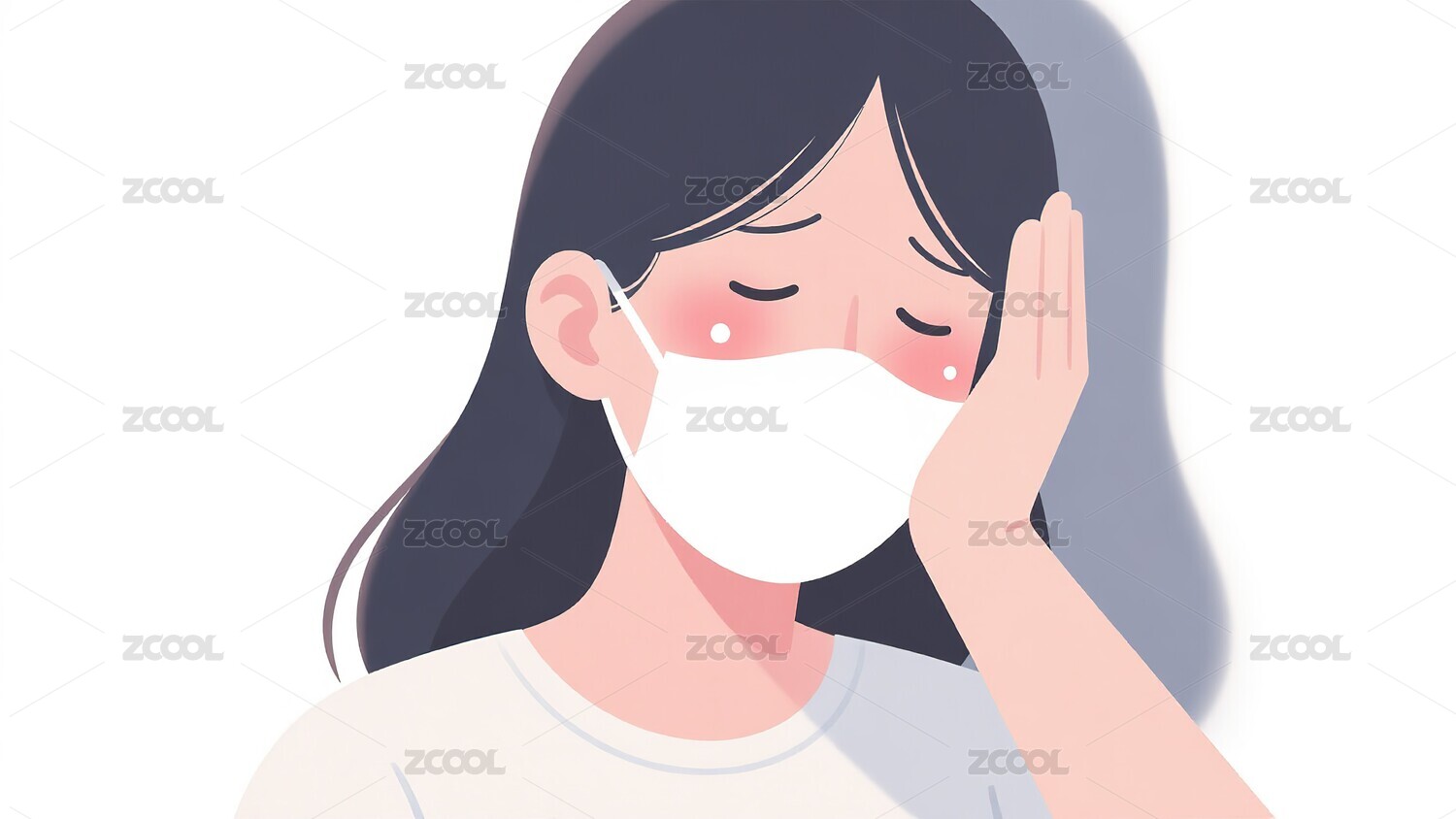 女性,口罩,哀伤,健康,表情,生病,医疗,情绪,流感,病毒