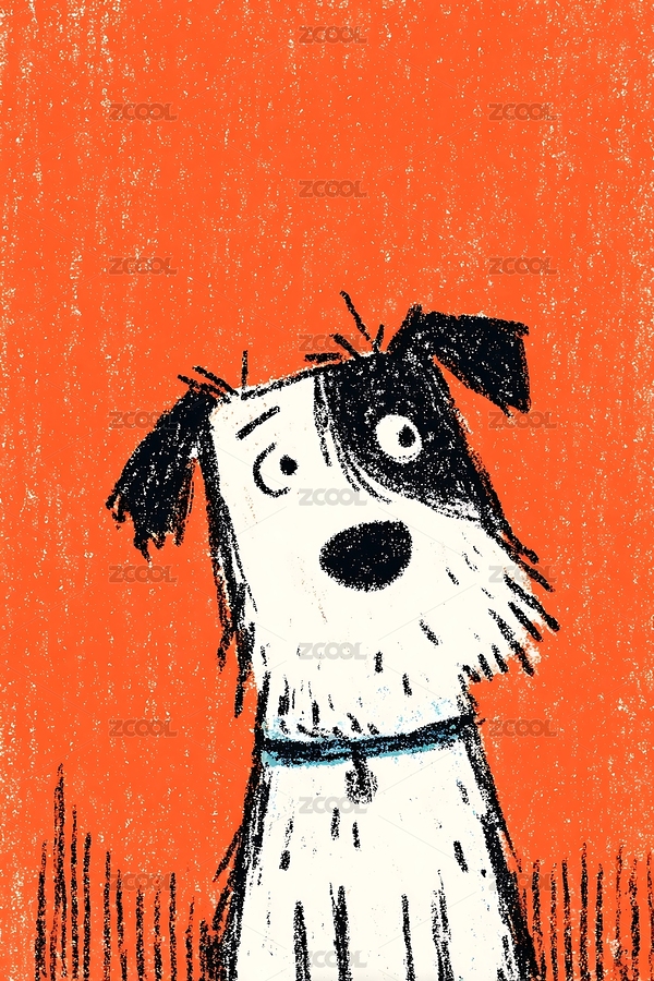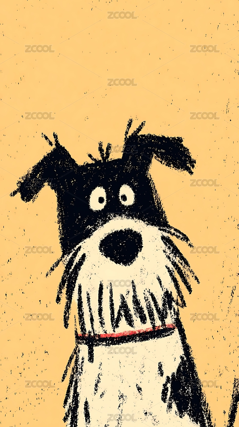插画,可爱,动物,萌宠,黑白,艺术,卡通,小狗