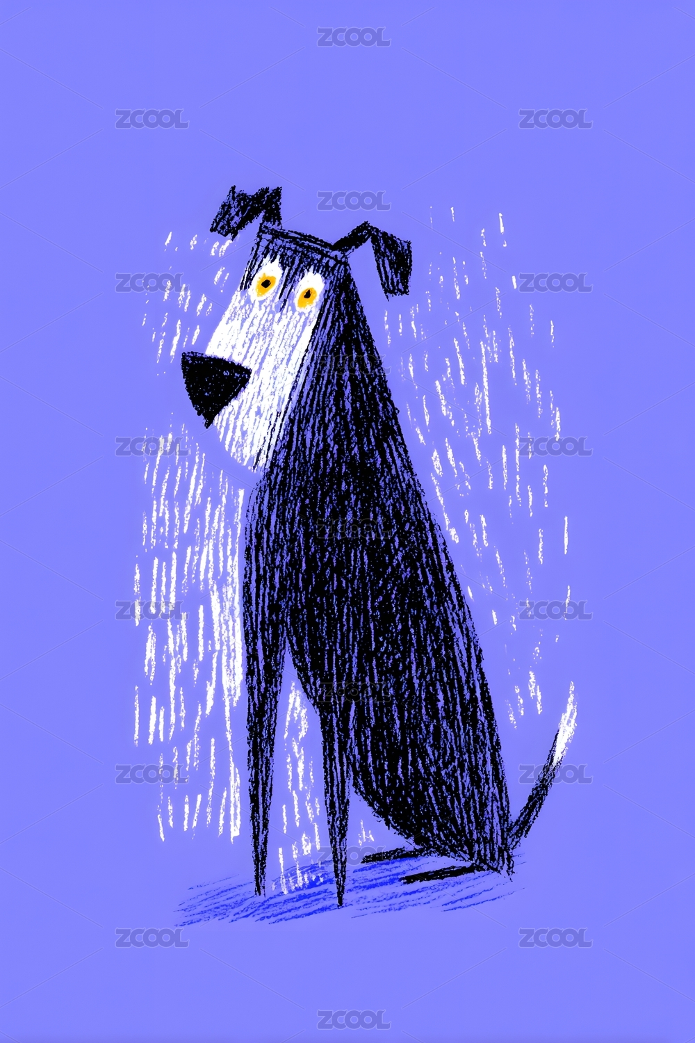 雨中黑狗站立图