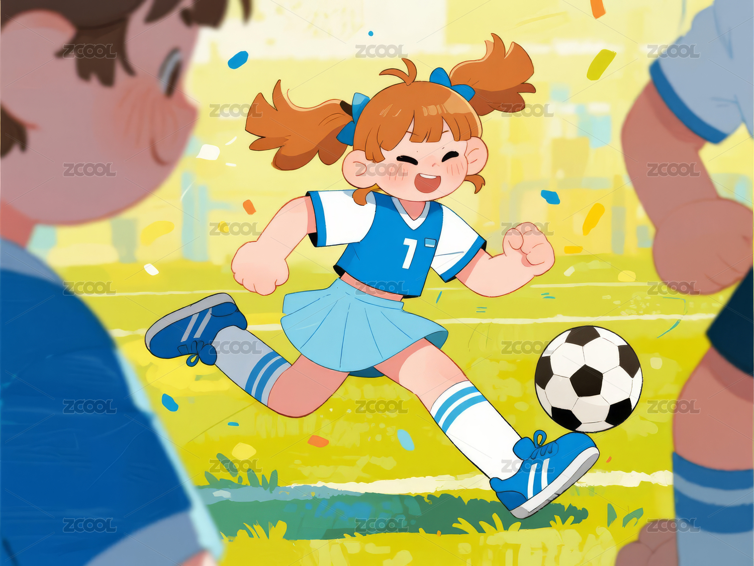 踢足球的女孩插画