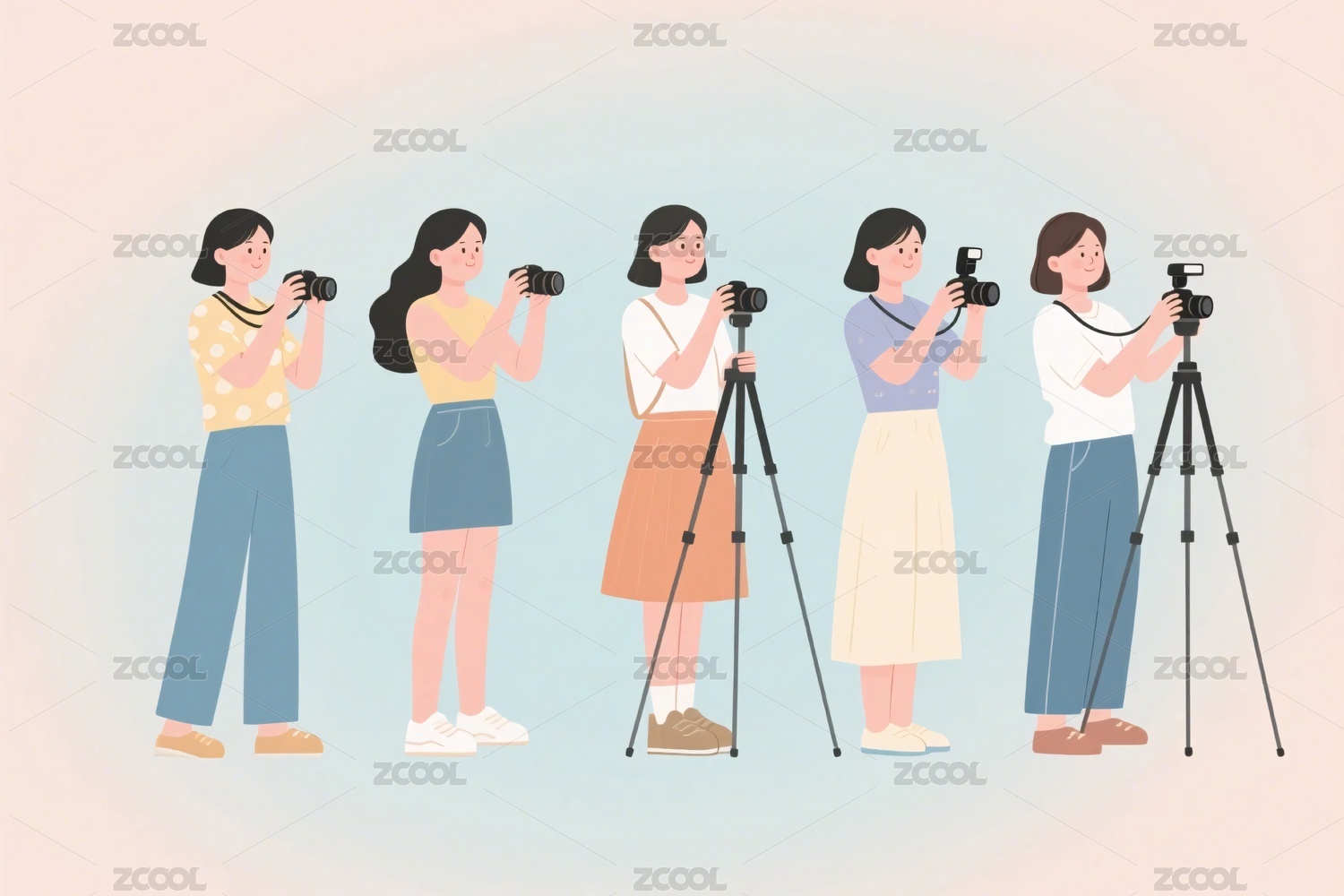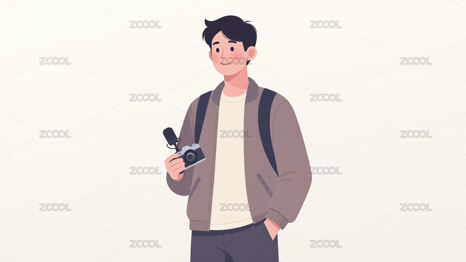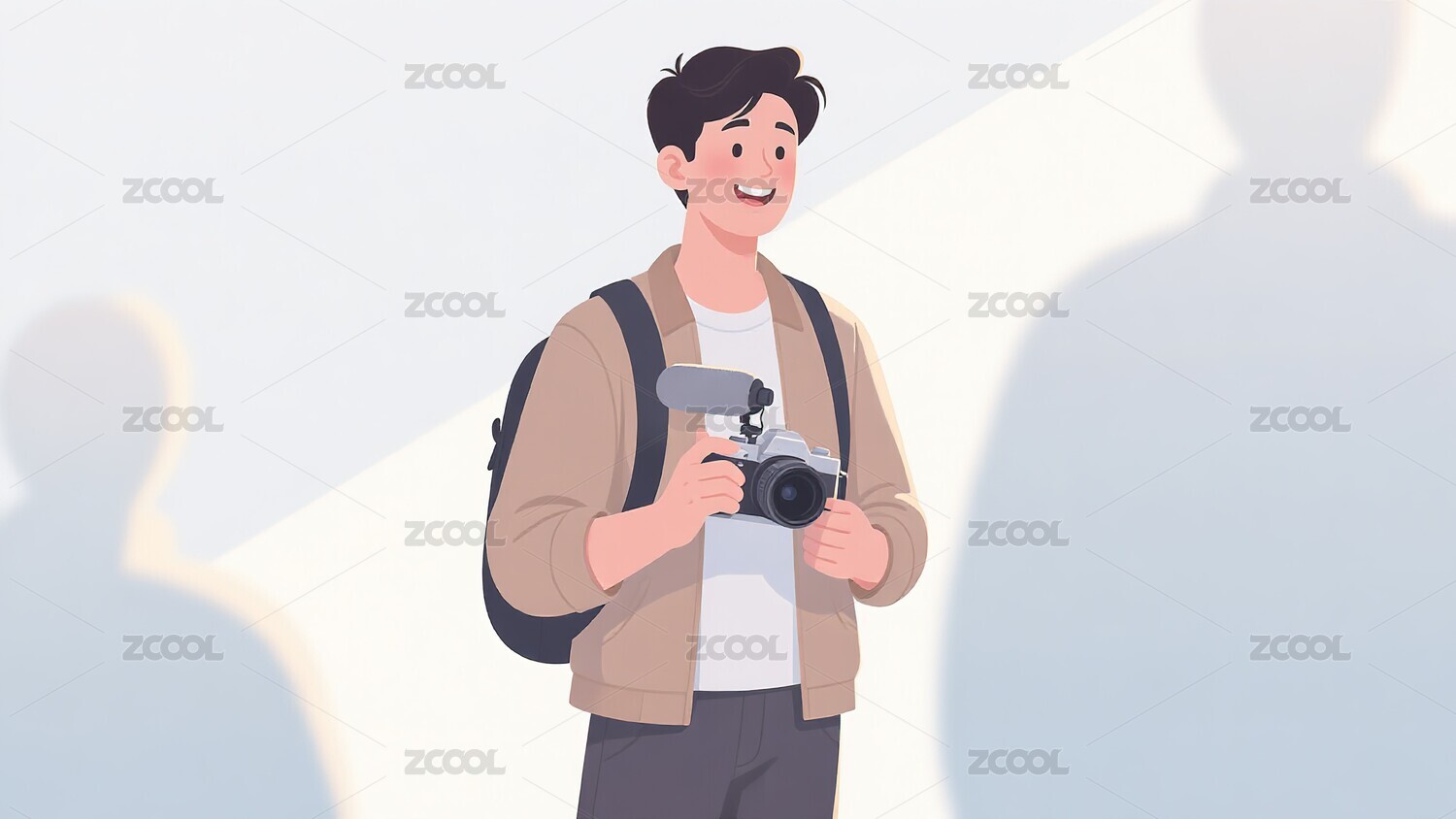 年轻,女性,手持,相机,背包,白衬衫,休闲,户外,摄影,旅行