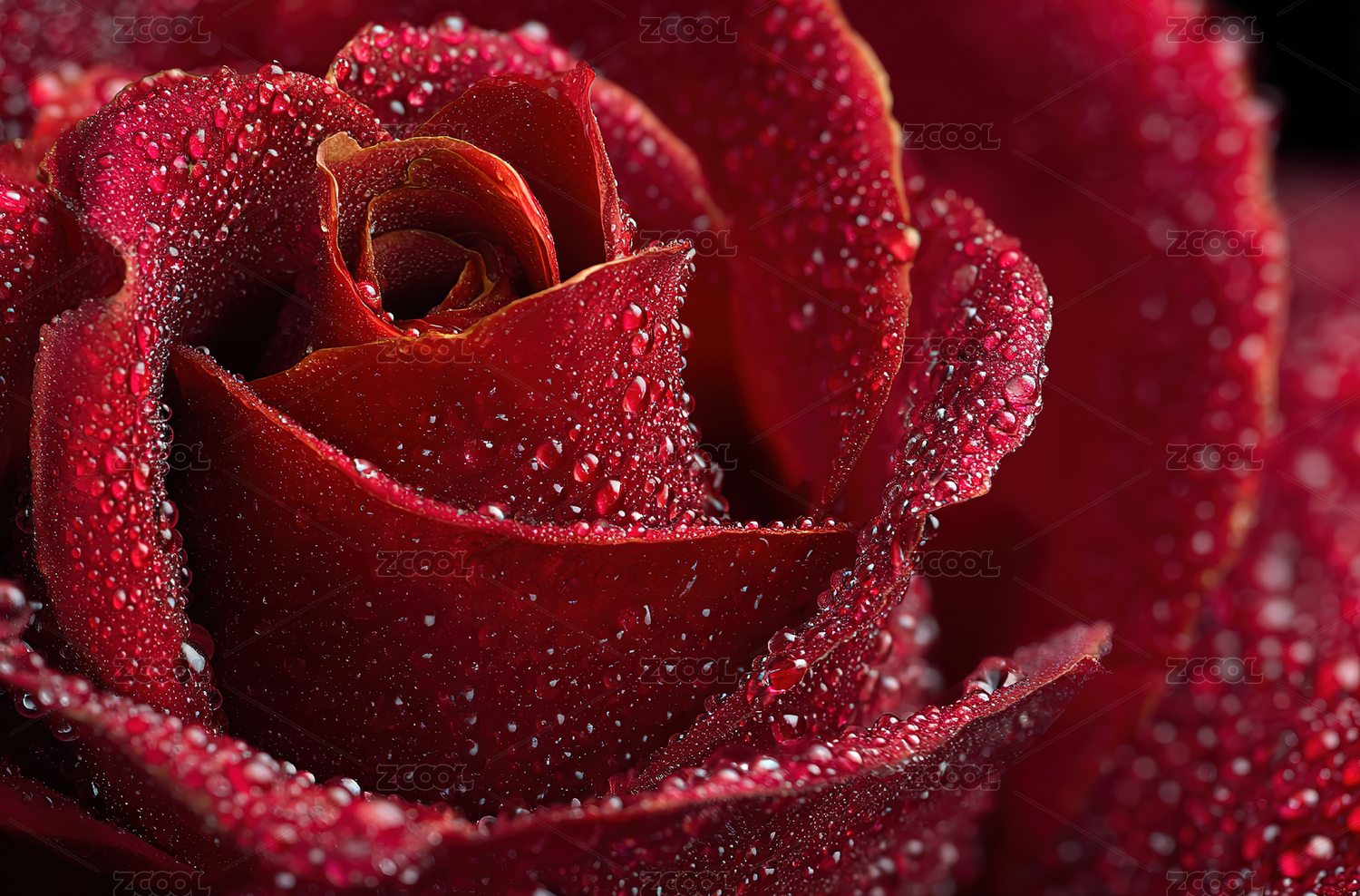 深红玫瑰上的露珠特写