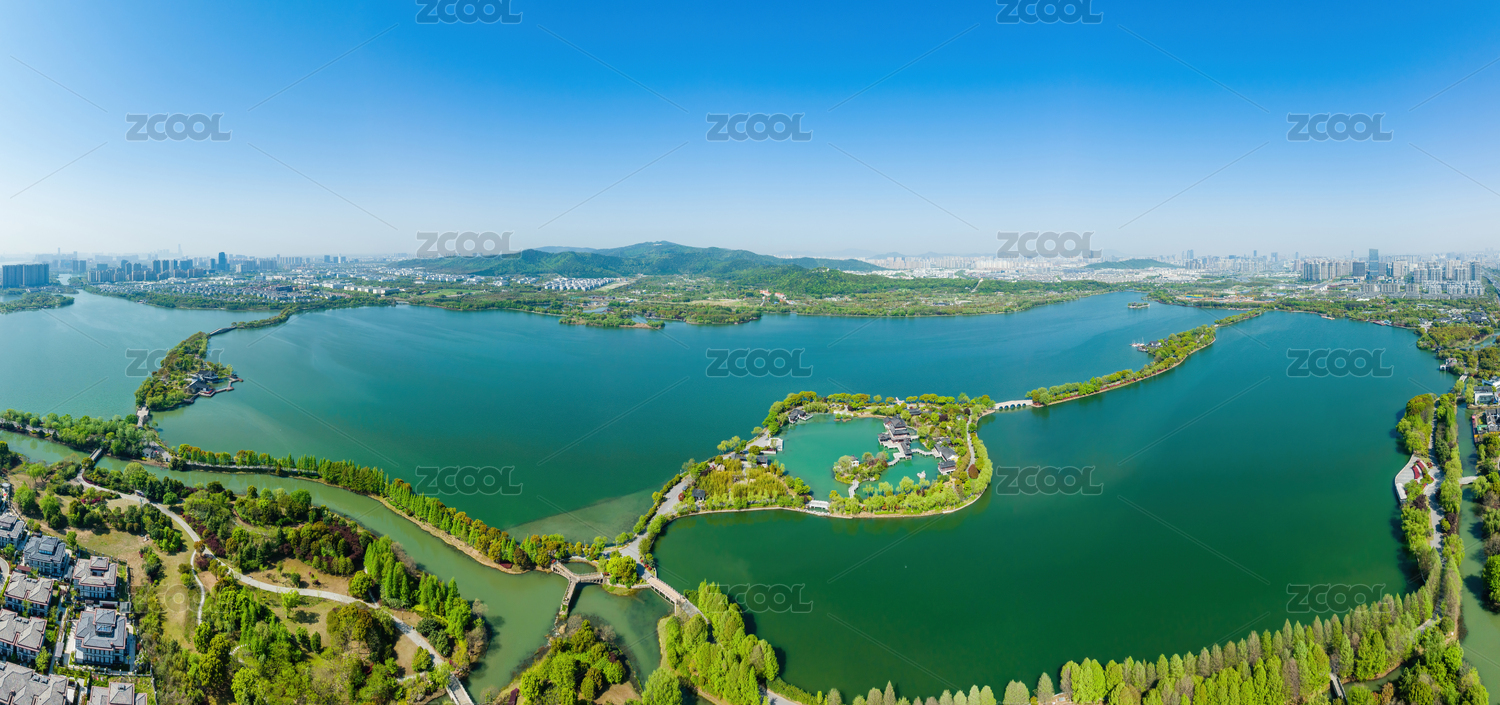 湖北武汉东湖生态旅游风景区城市天际线航拍