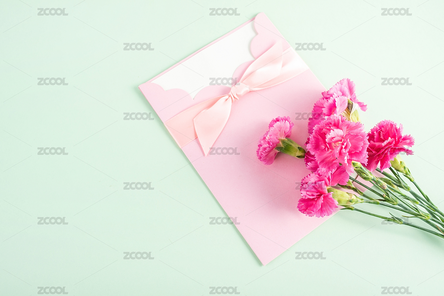母亲节祝福贺卡和康乃馨花朵海报背景素材