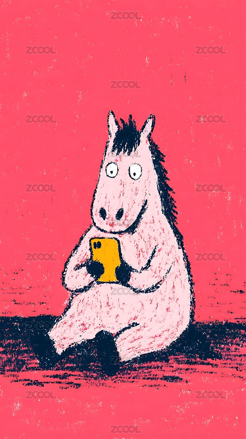 牛马卡通扁平动物插画