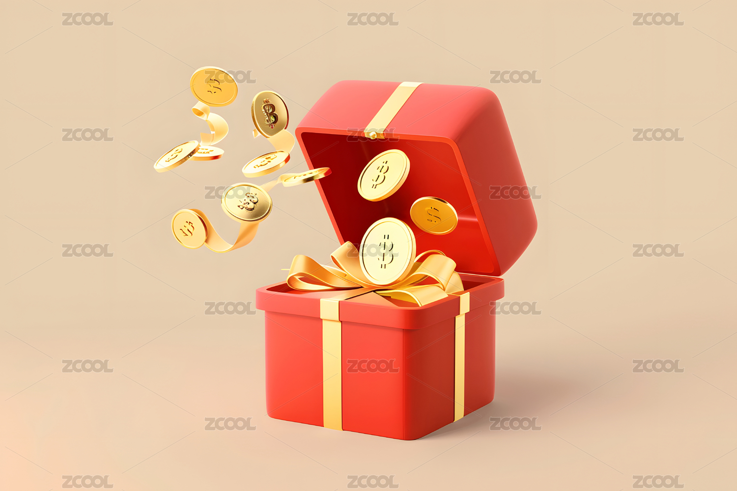 礼盒金币喜庆商业展示场景