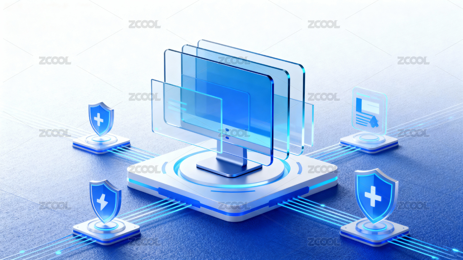 科技蓝白盾牌保护浅色智能概念场景3D渲染