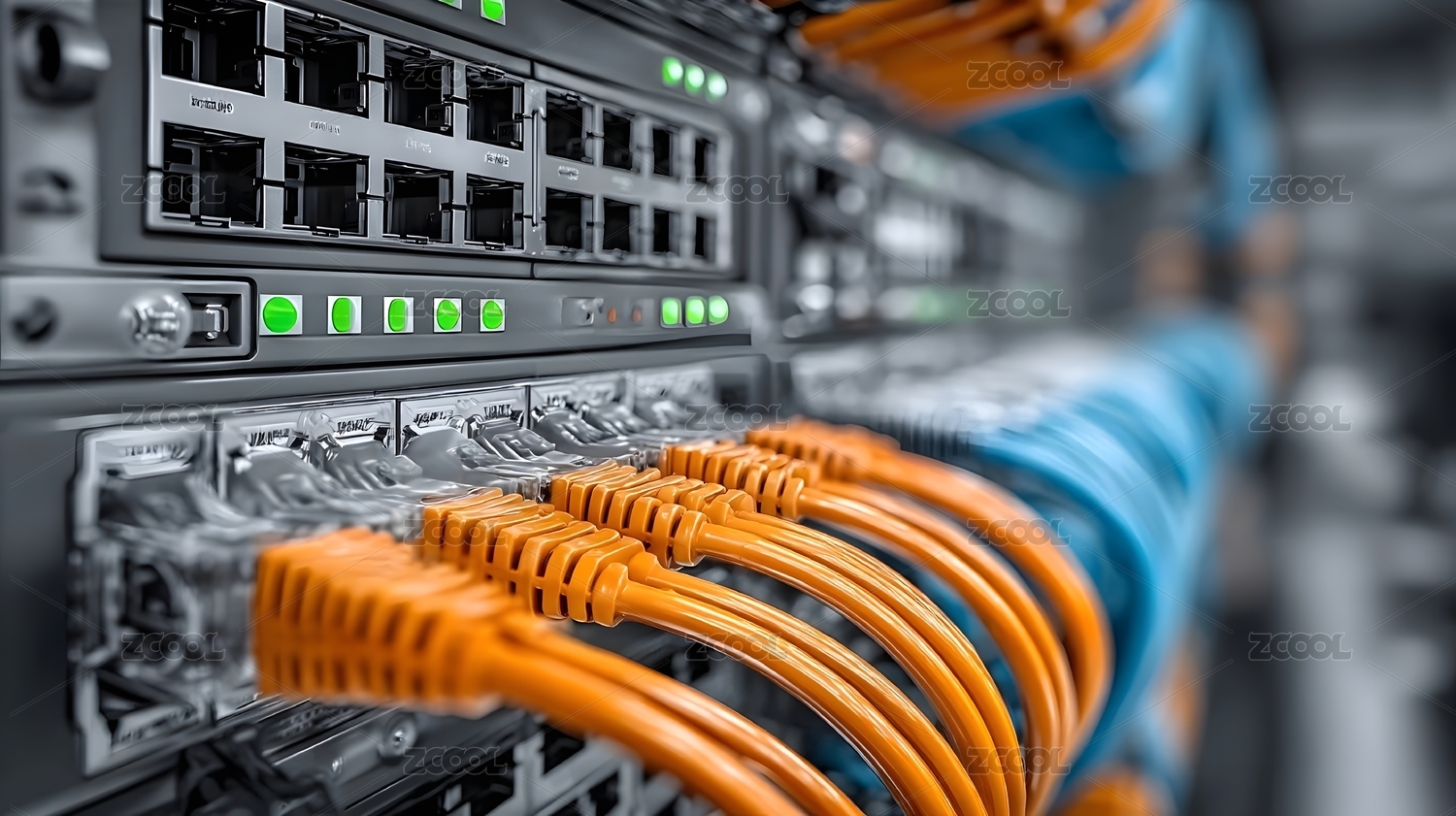 服务器机房网络连接特写