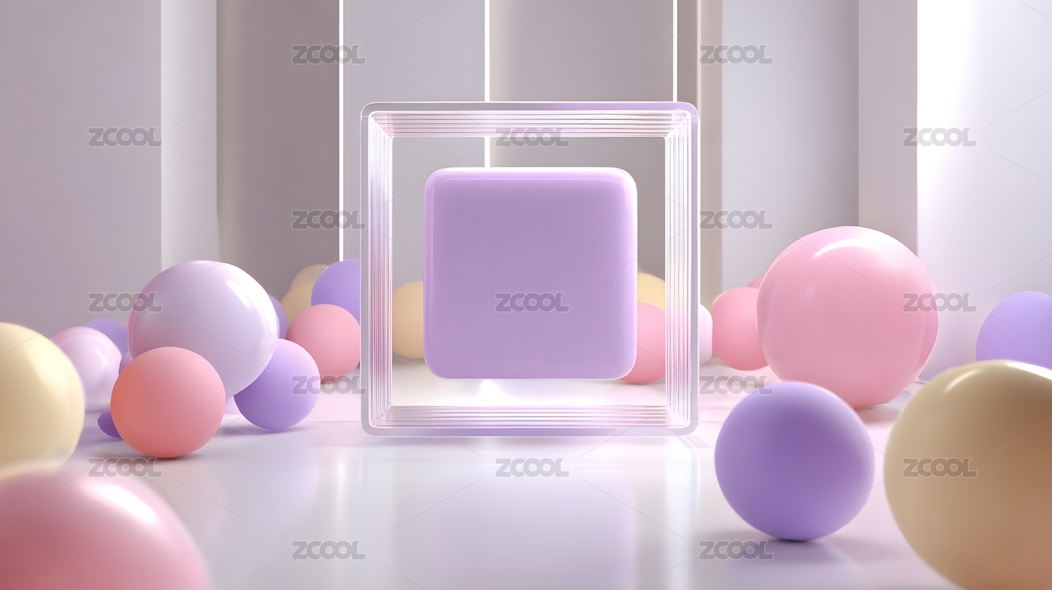 美妆,产品,粉紫,展示,丝带,球体,清新,简约,时尚,质感