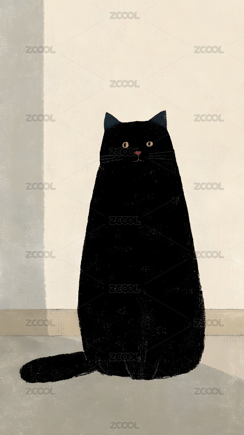 猫咪,插画,可爱,动物,萌宠,黑白,艺术,卡通,猫
