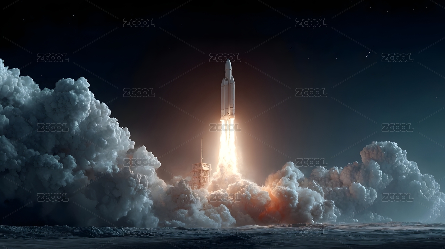 火箭升空夜空发射
