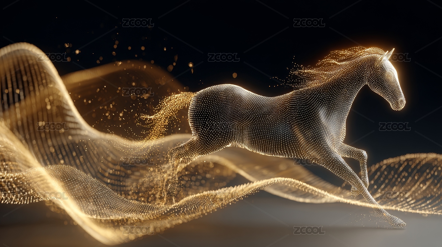 神秘黑色背景一匹晶莹剔透骏马半身特写立体