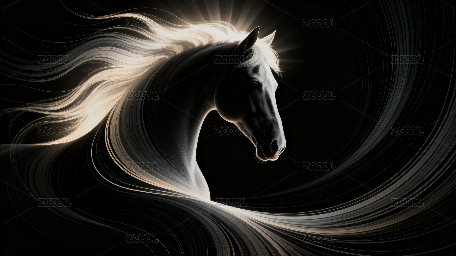 骏马,头像,流光,溢彩,光效,线条,艺术,插画,创意,装饰