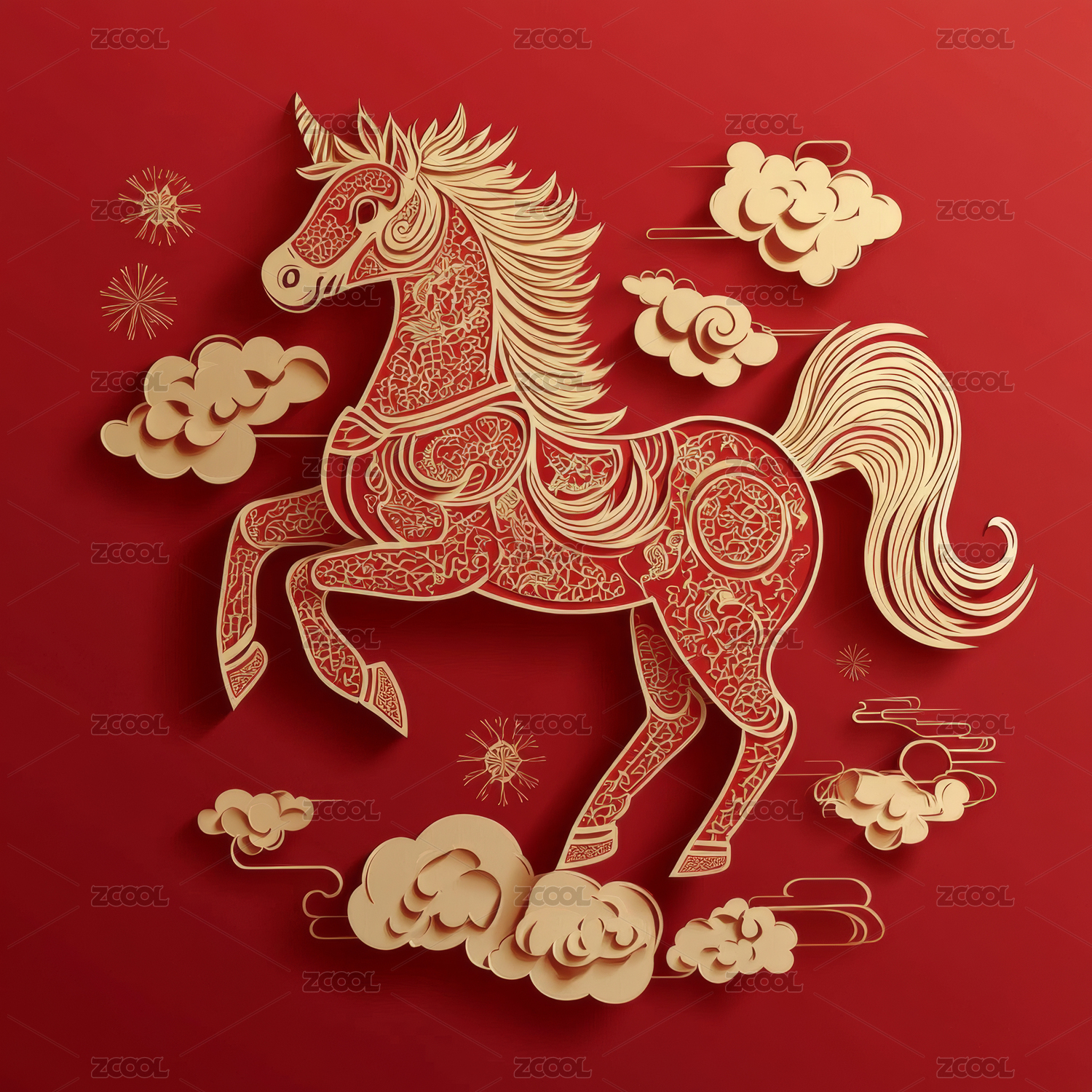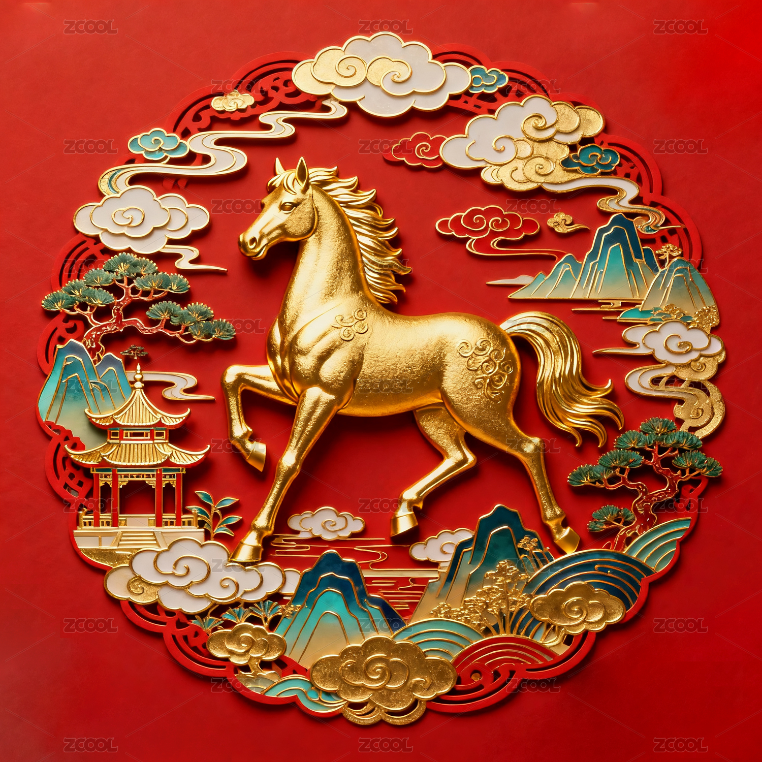 彩马国潮感新年生肖马场景