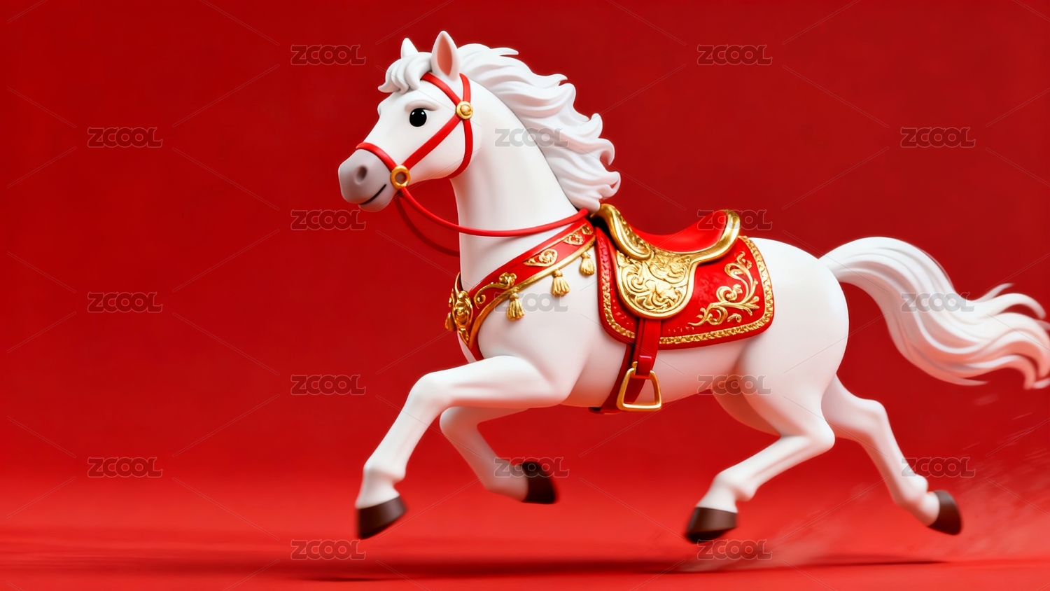 马年,大吉,背景,红色,氛围,中央,骏马,白色,马身,装饰