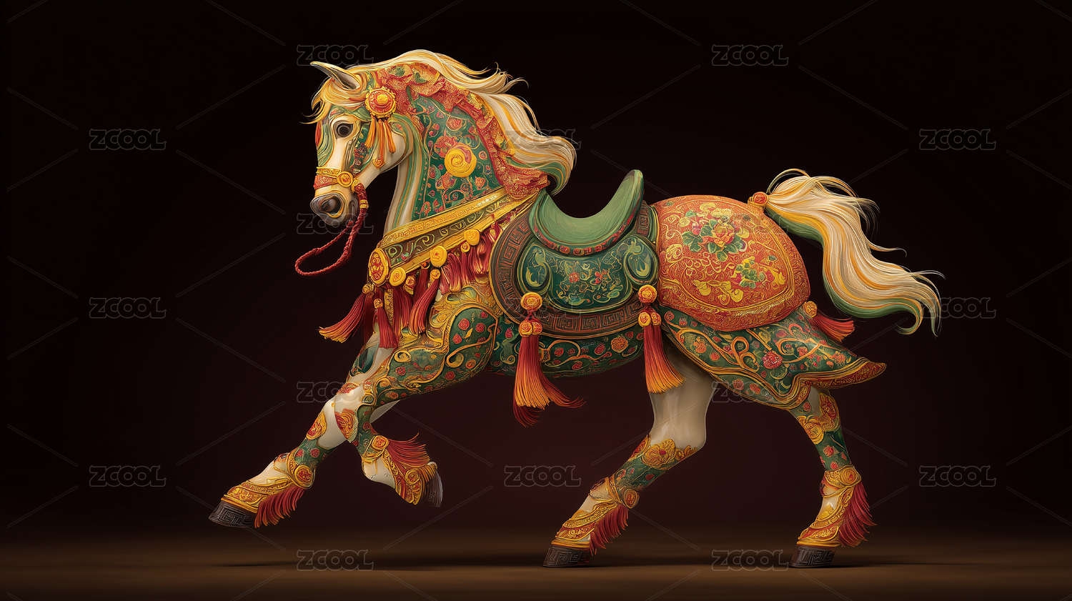 马年,大吉,背景,红色,氛围,中央,骏马,白色,马身,装饰