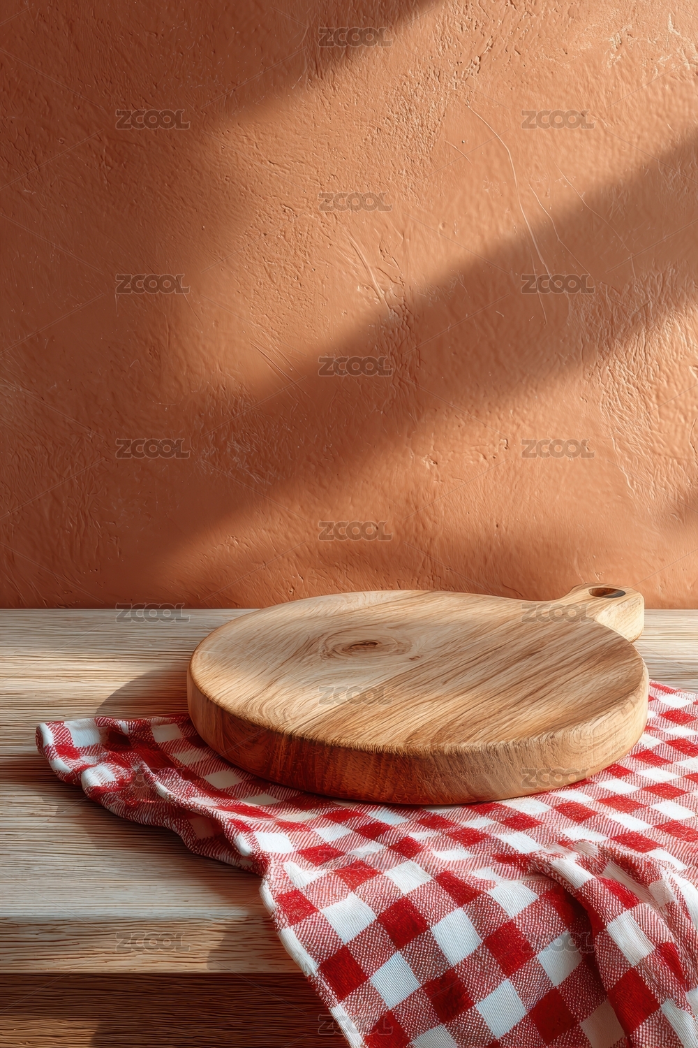 木质,砧板,红白,格子布,静物,摄影,木桌,自然光,家居,装饰