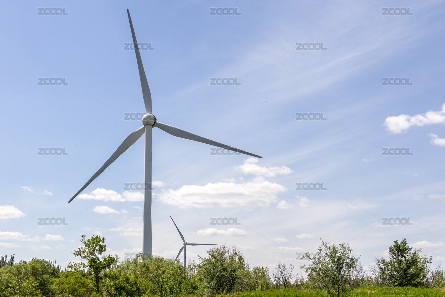 白色结构,旋转部件,工业设施,清洁能源,风力发电机,蓝天,叶片