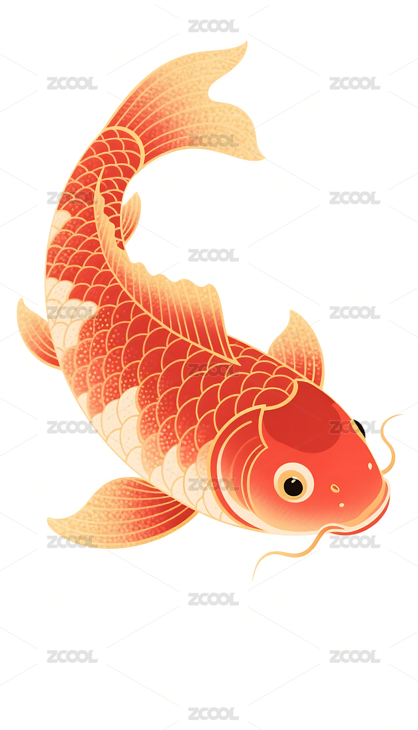 红色,背景,传统,艺术,文化,风格,装饰,图案,鱼,金色