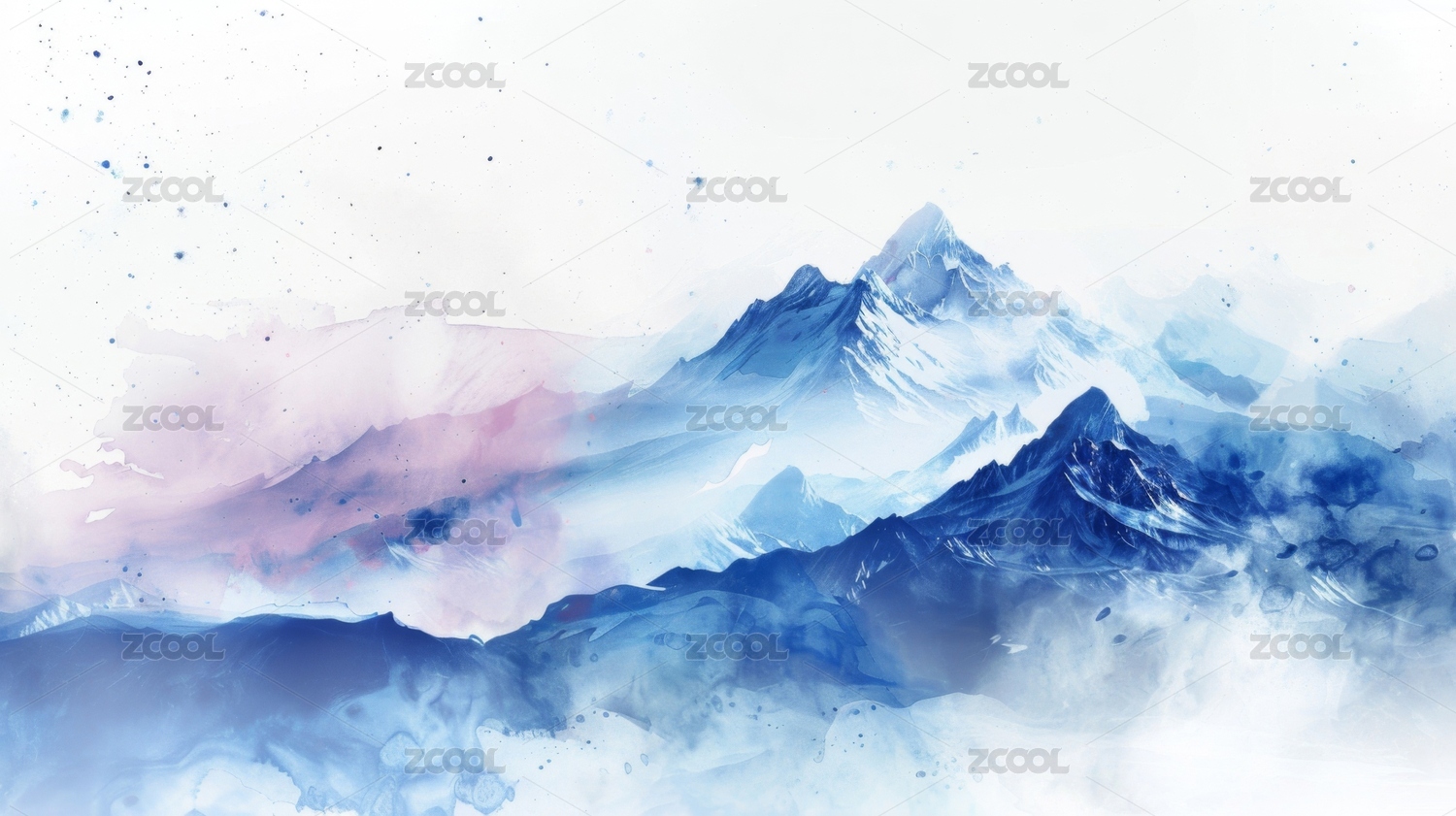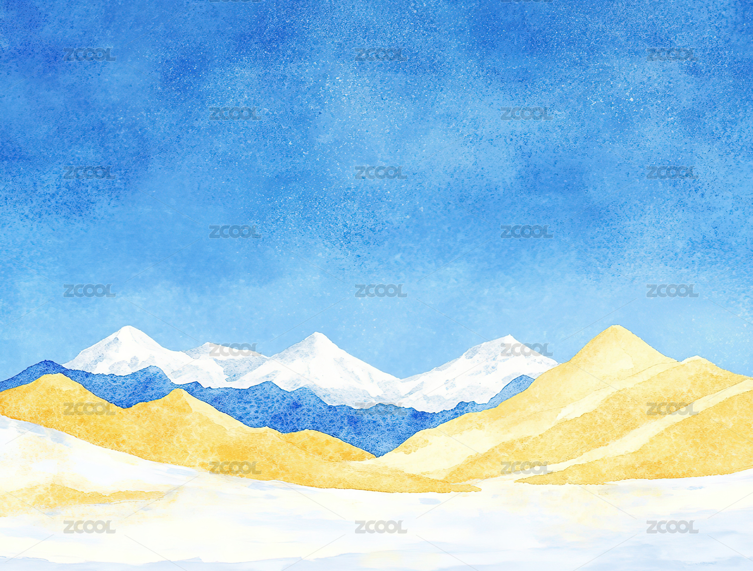 水彩风格雪山星空图