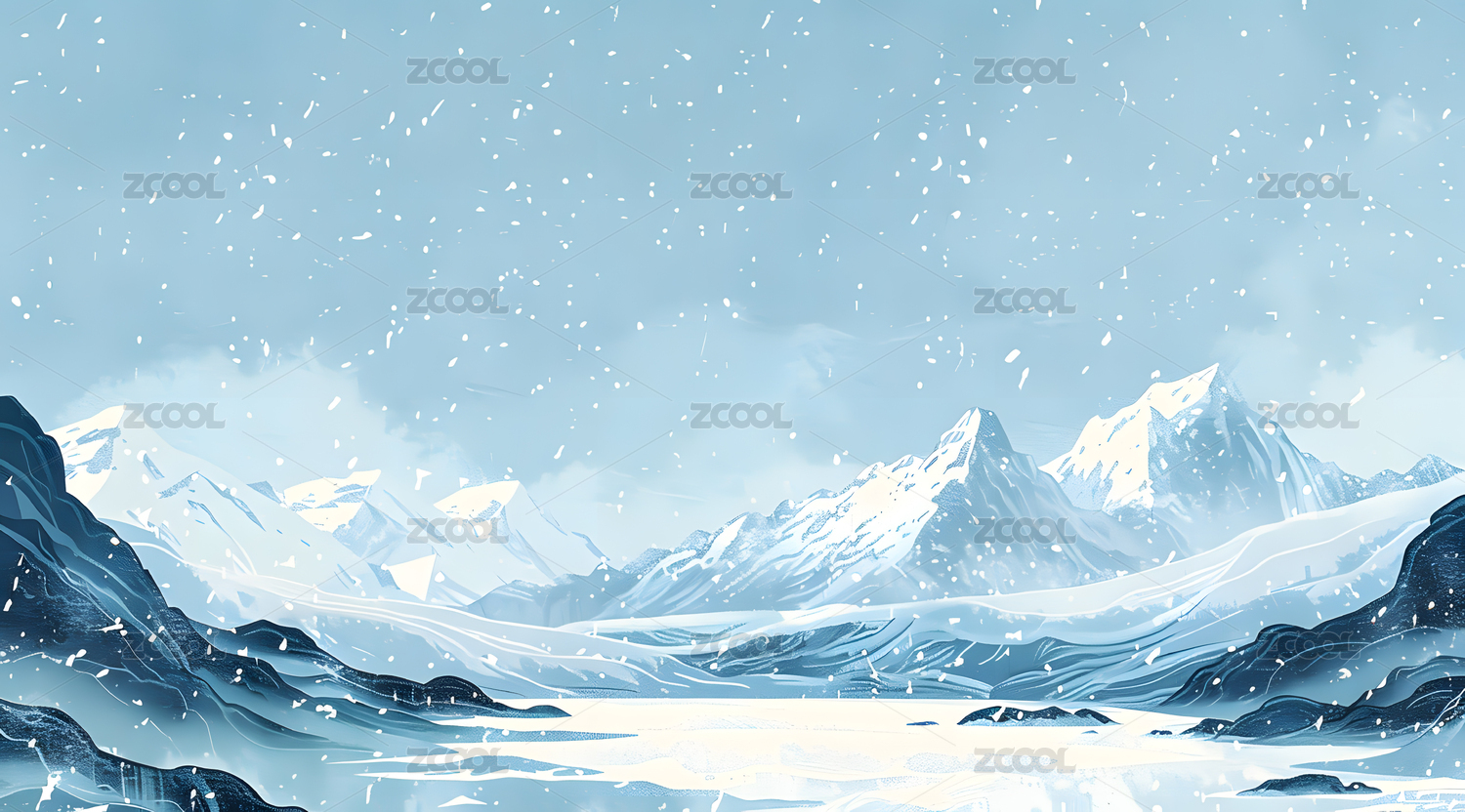 冬季山水插画