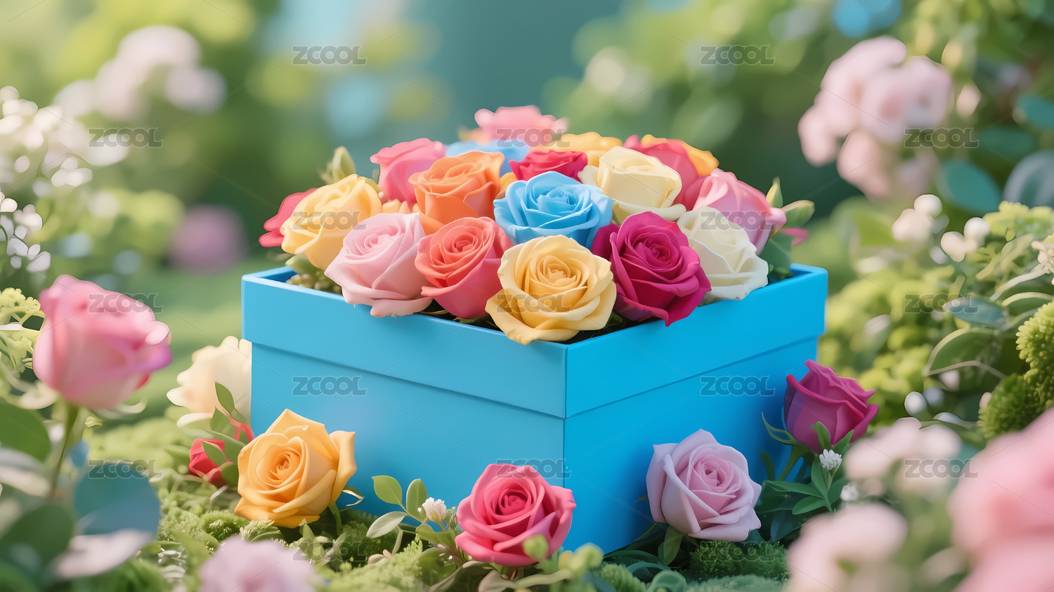 玫瑰,礼盒,几何,浅蓝,温馨,优雅,花束,多彩,柔和,装饰
