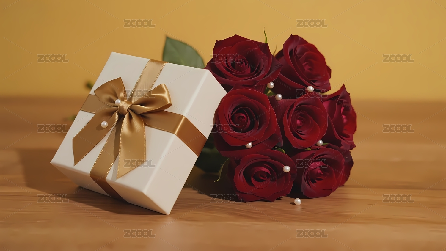 棚拍静物粉色玫瑰花爱心与礼物盒