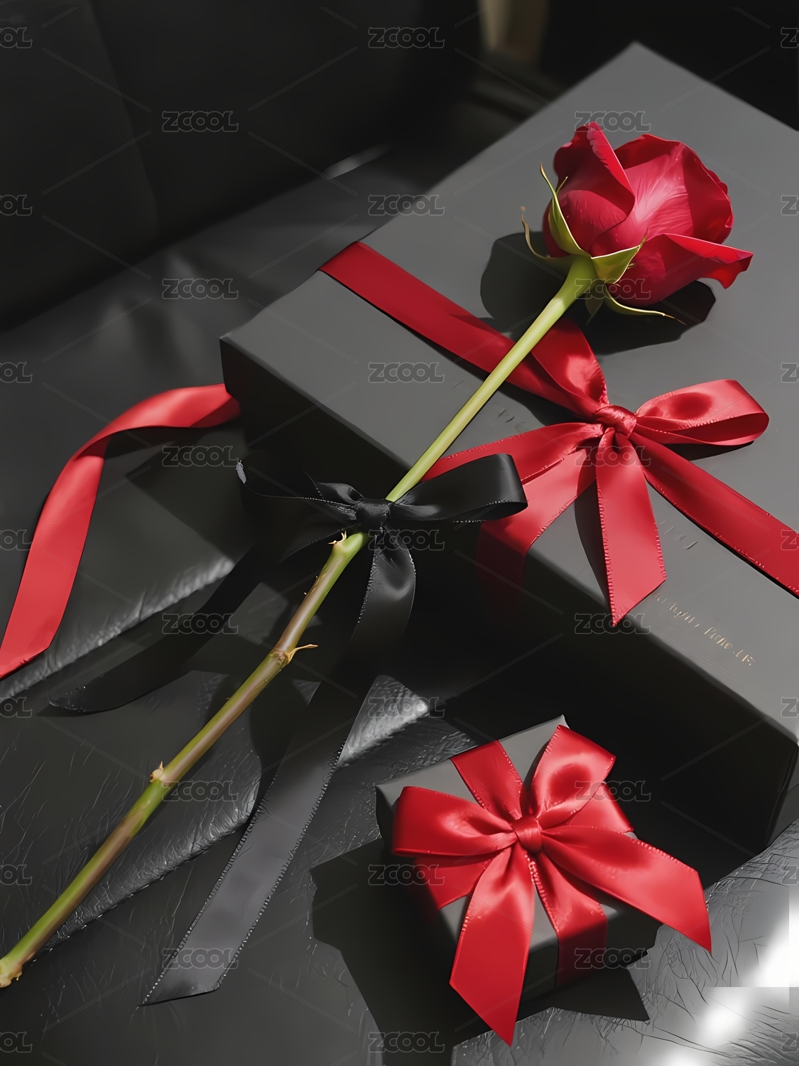 黑色礼盒与红色玫瑰的优雅组合