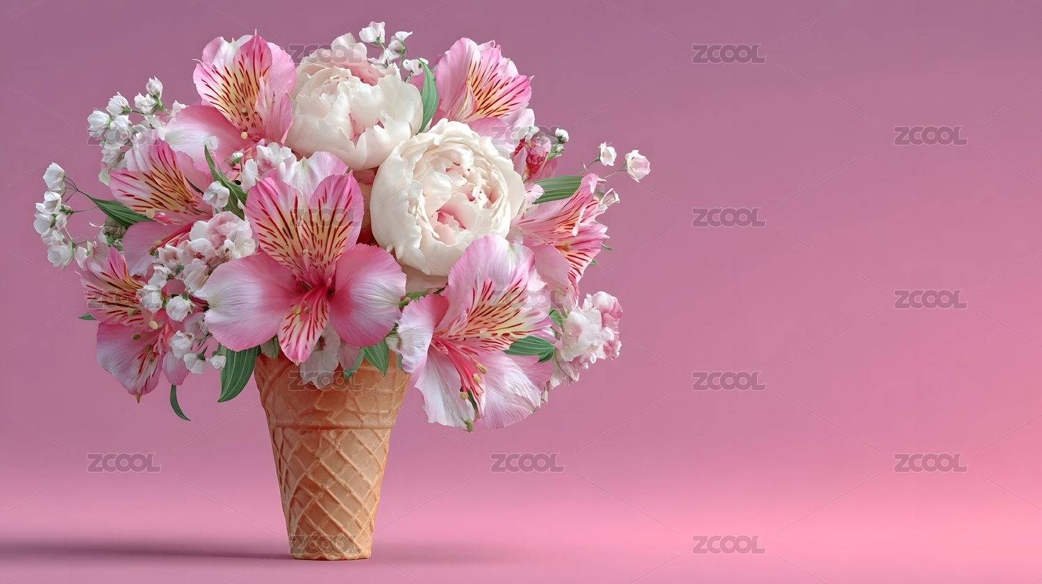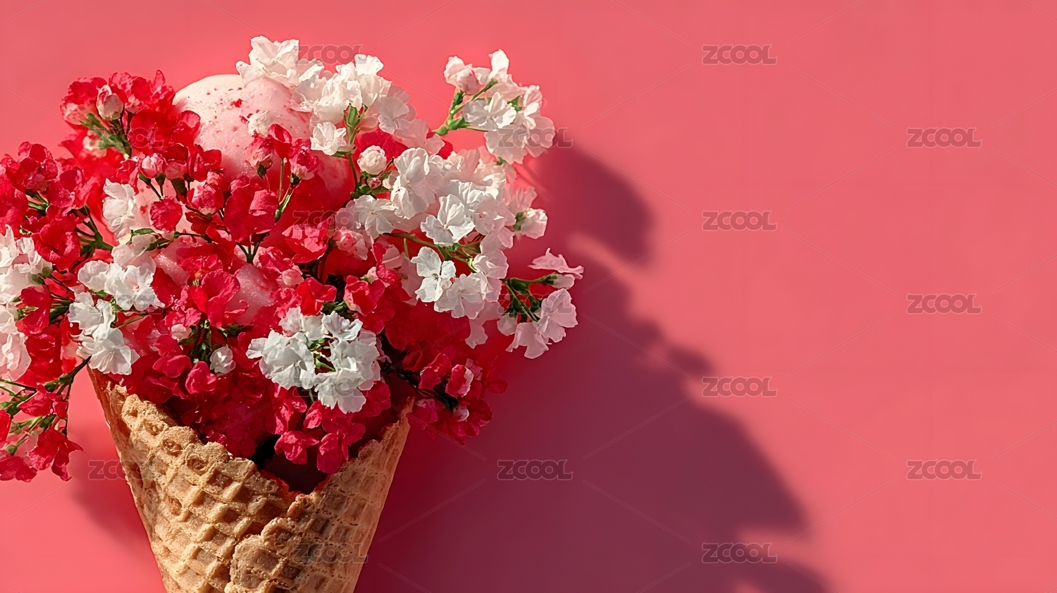 粉色,背景,装饰,花瓣,花束,植物,白色,绿叶,冰淇淋,冰激凌