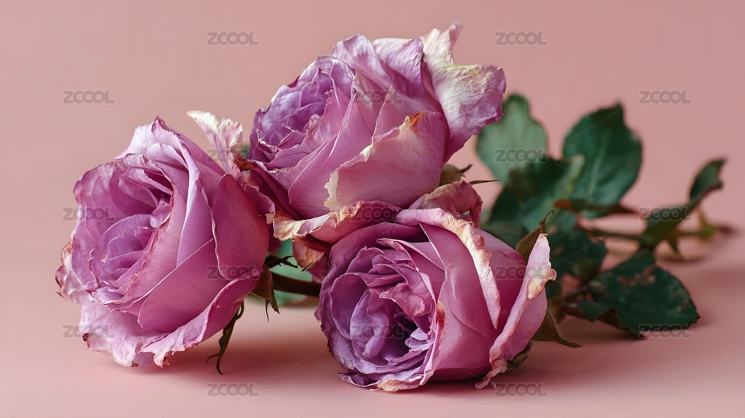 三朵柔粉玫瑰绽放优雅姿态