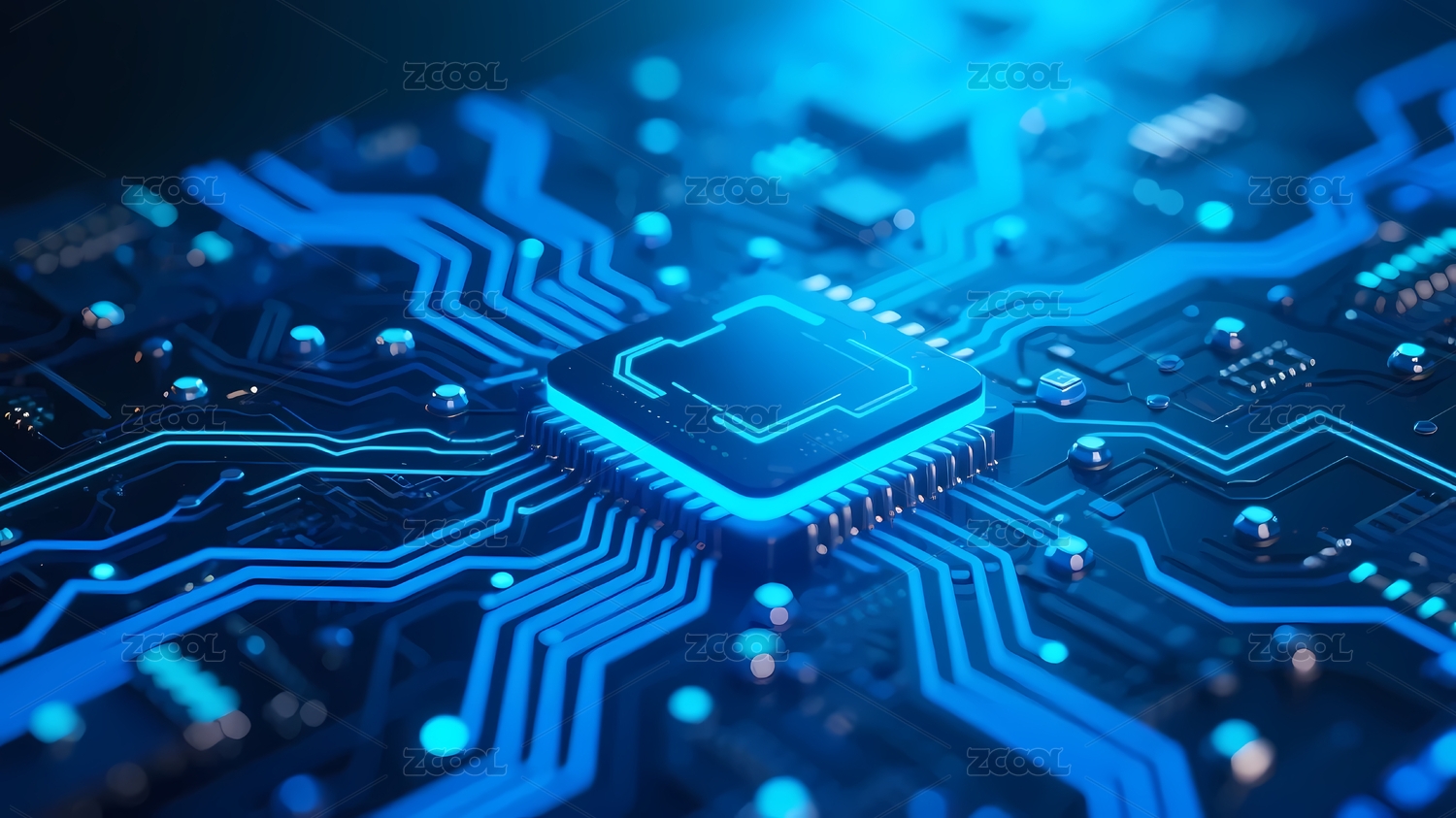 蓝色芯片与电路板的科技感