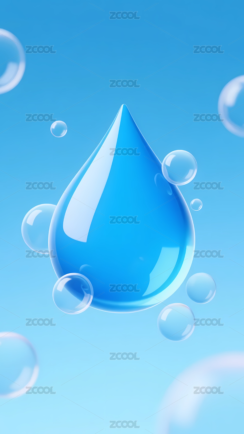 水滴,蓝色背景,圆形波纹,插画,透明,元素,画面,自然,静物,纯净