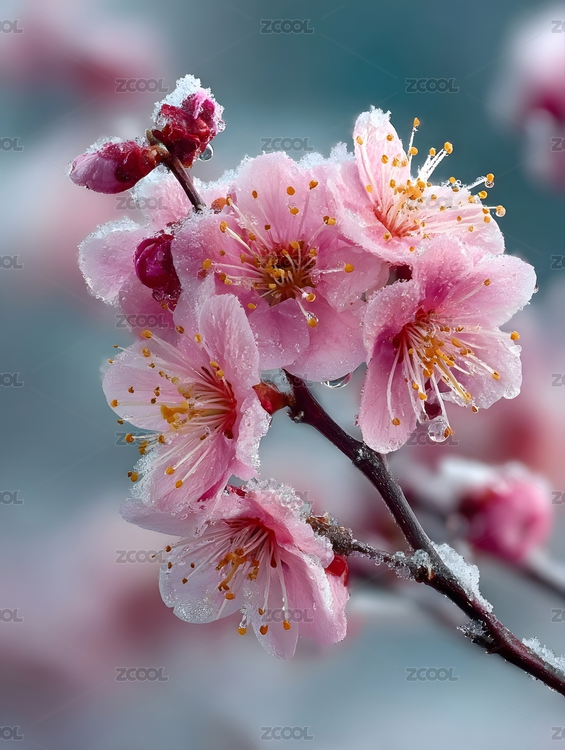 雪中梅花绽放