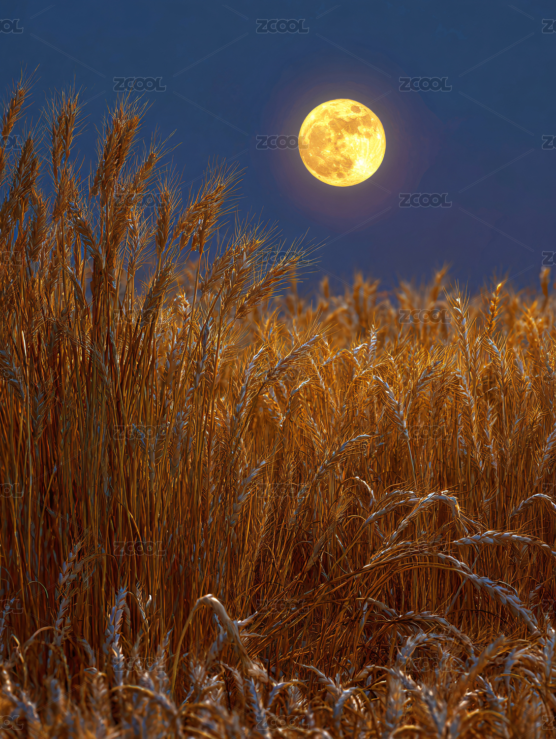 金色麦田与满月夜景