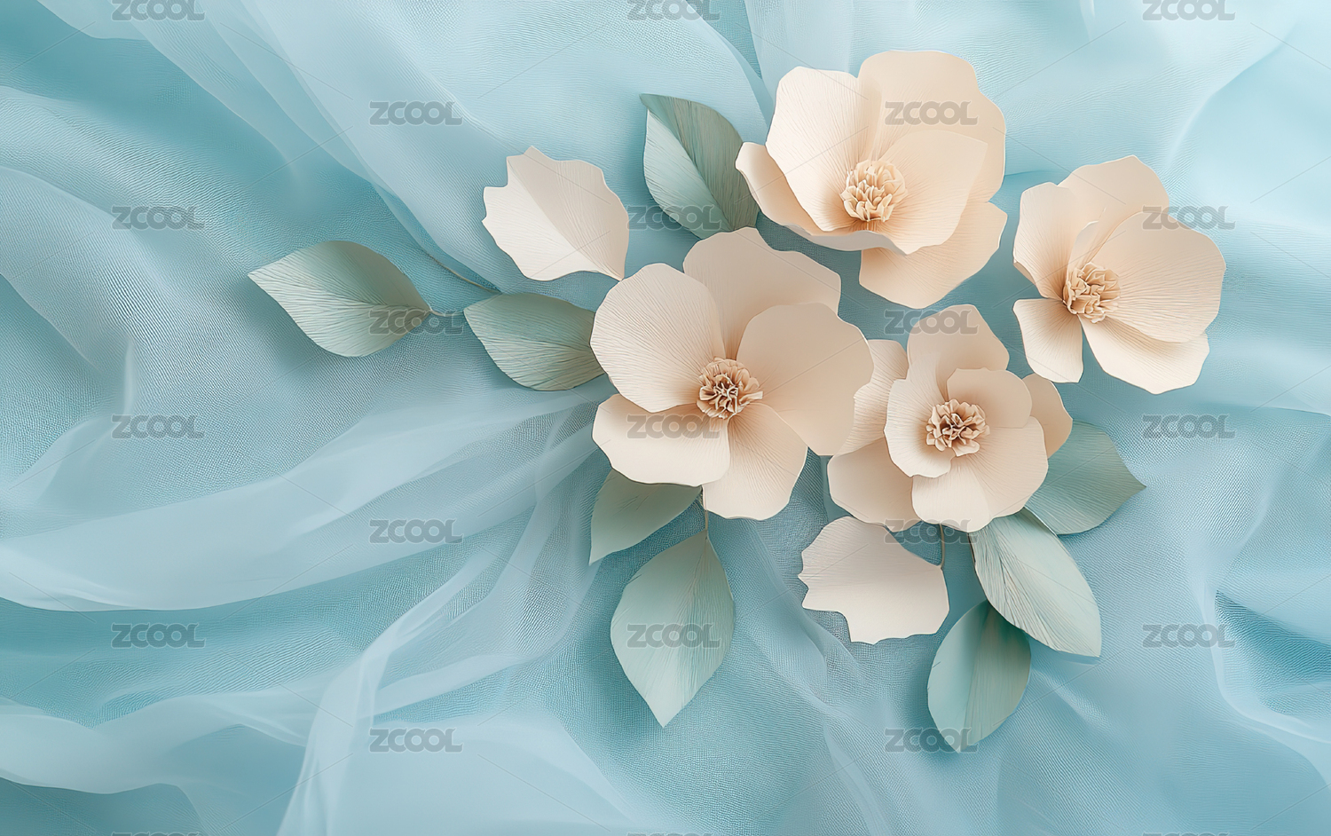 柔和,布料,蓝色,白色,自然,层次,优雅,深蓝,静物,花卉