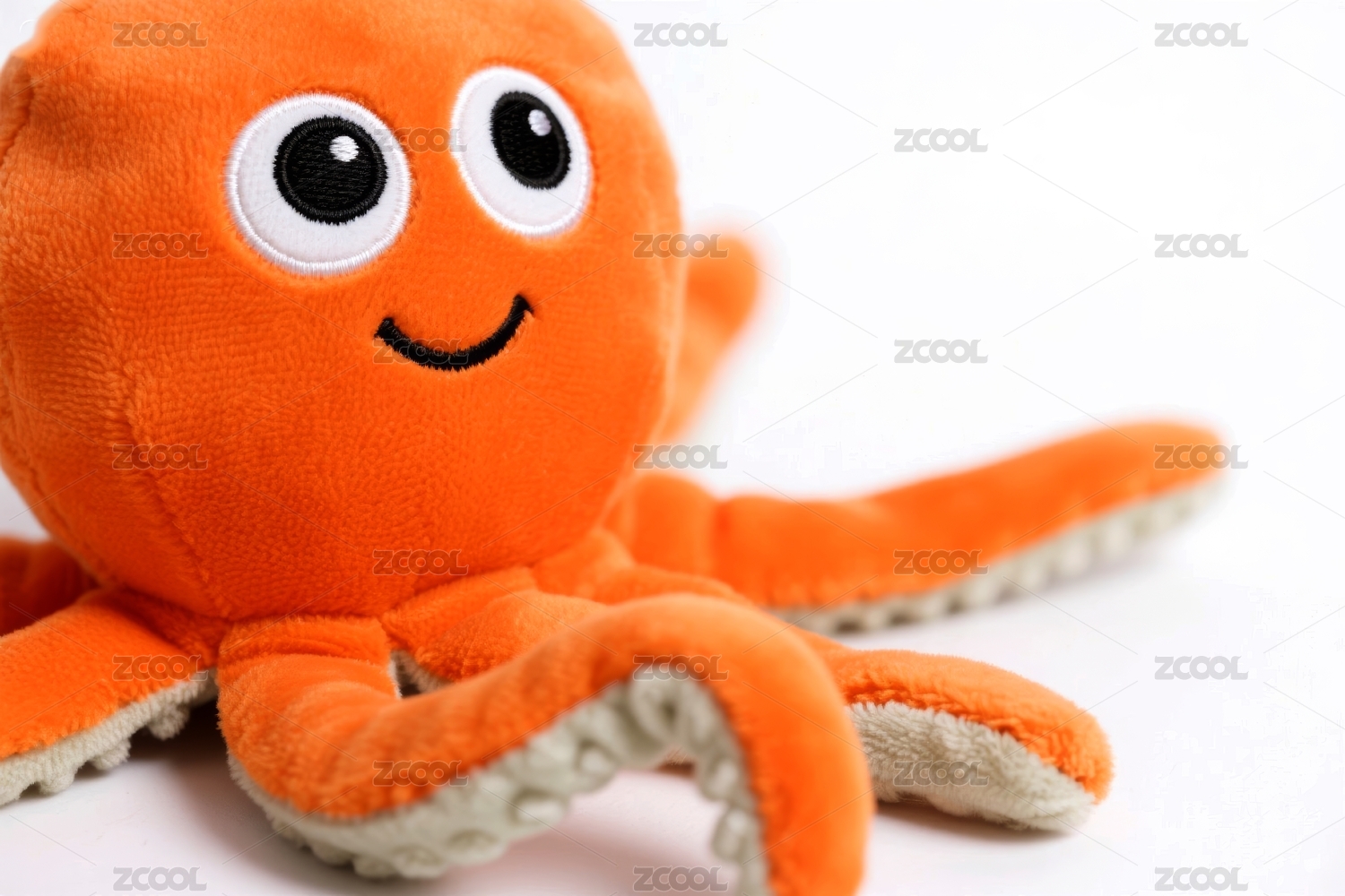 主视觉,章鱼,玩偶,可爱,展示,场景,橙色,毛绒,玩具,微笑