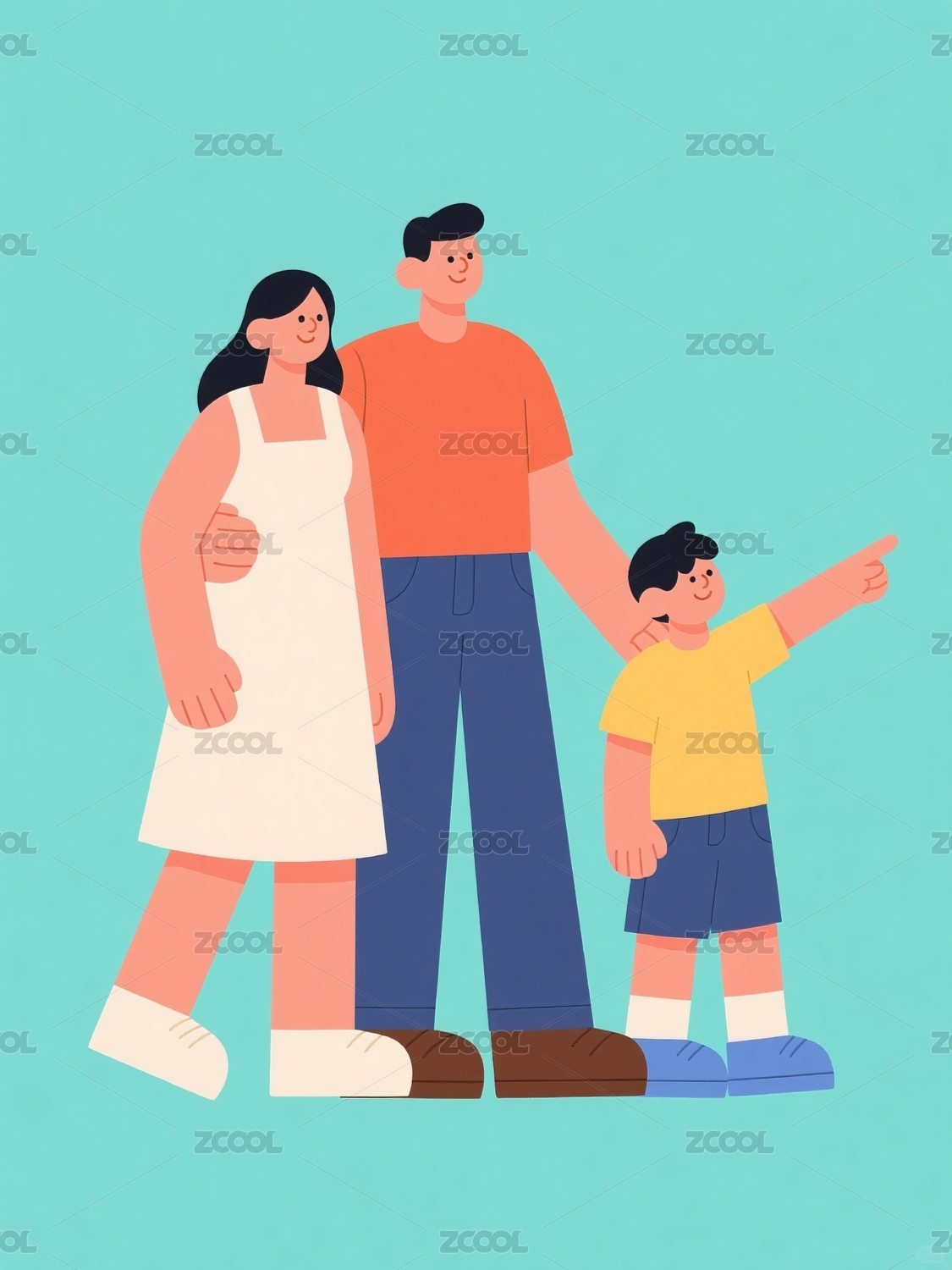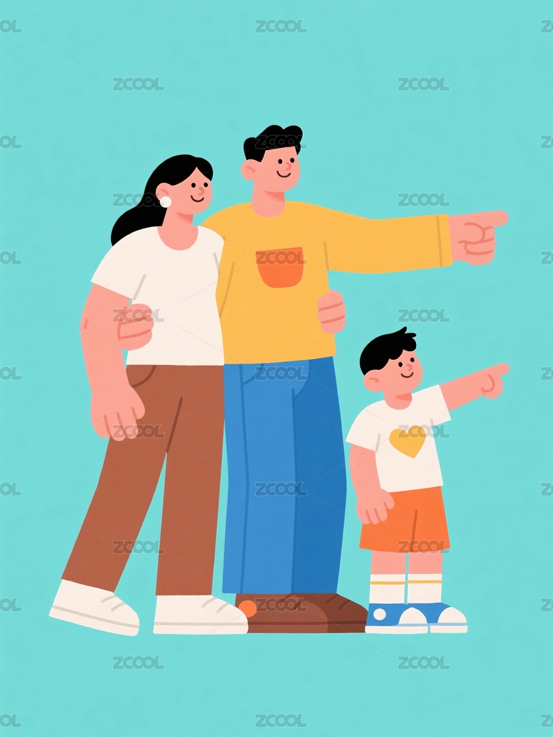 父亲,母亲,肩膀,头发,裤子,站立,蓝色,黄色,家庭,人物