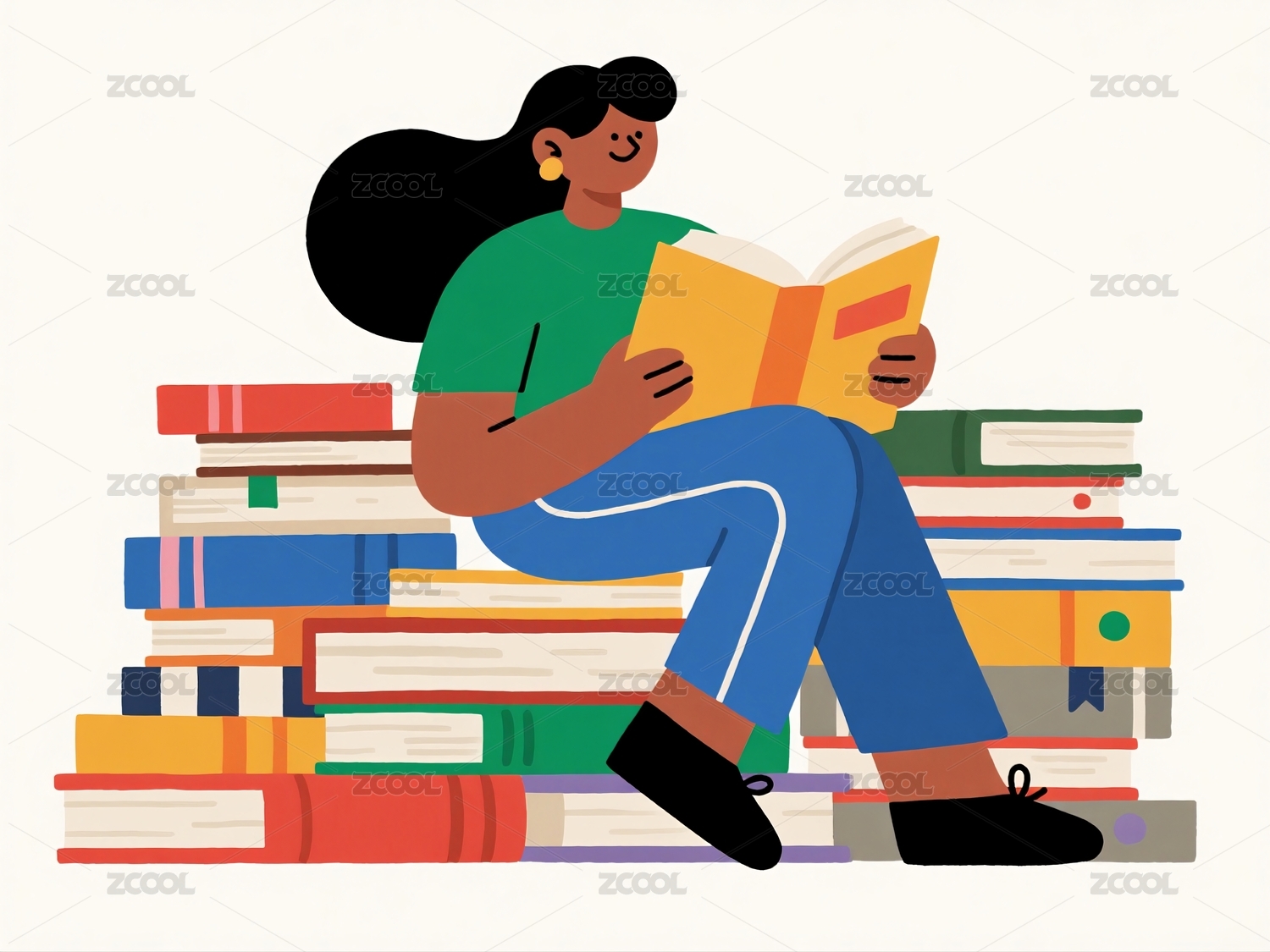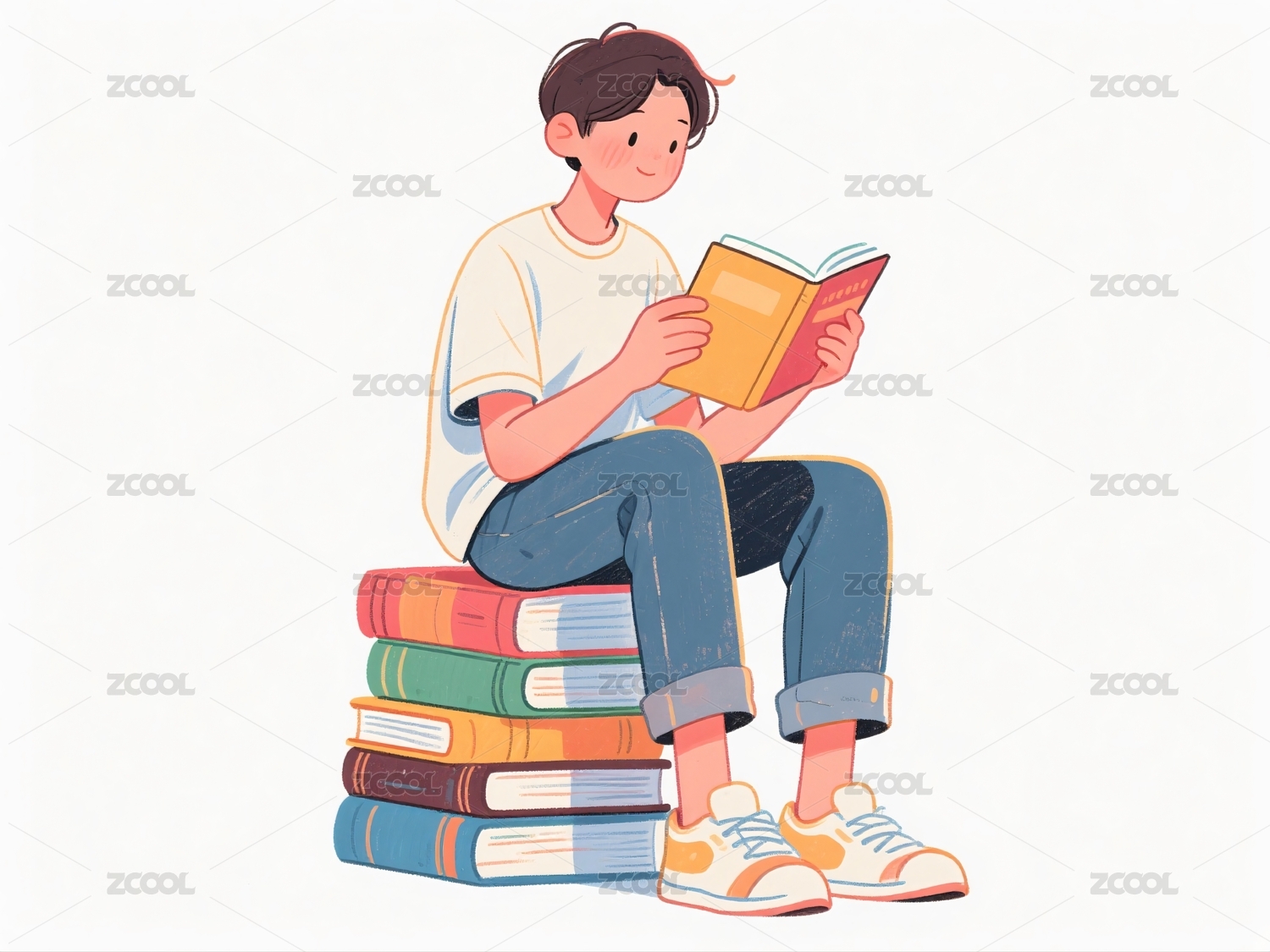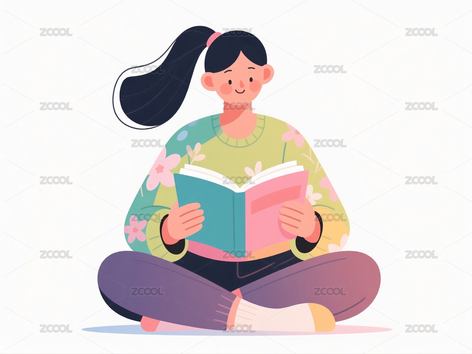 抬头,头发,蓝色,人物,橙色,衣服,绿色,书本,黑色,图案