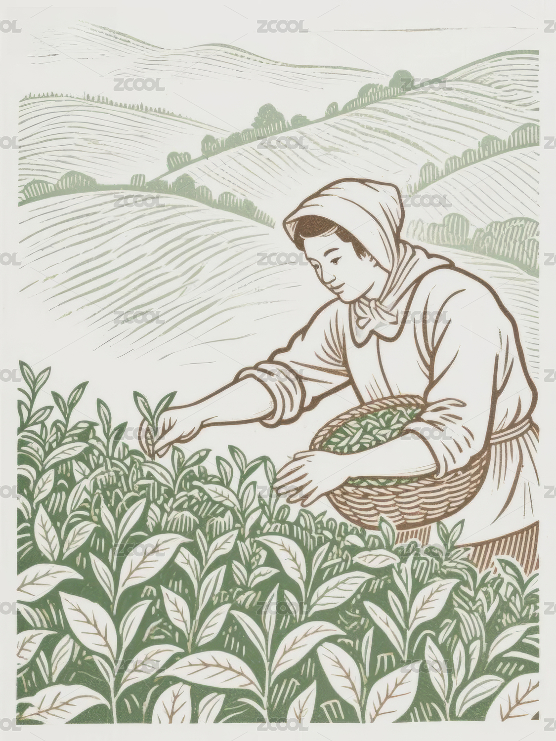 茶园采茶人物劳作场景