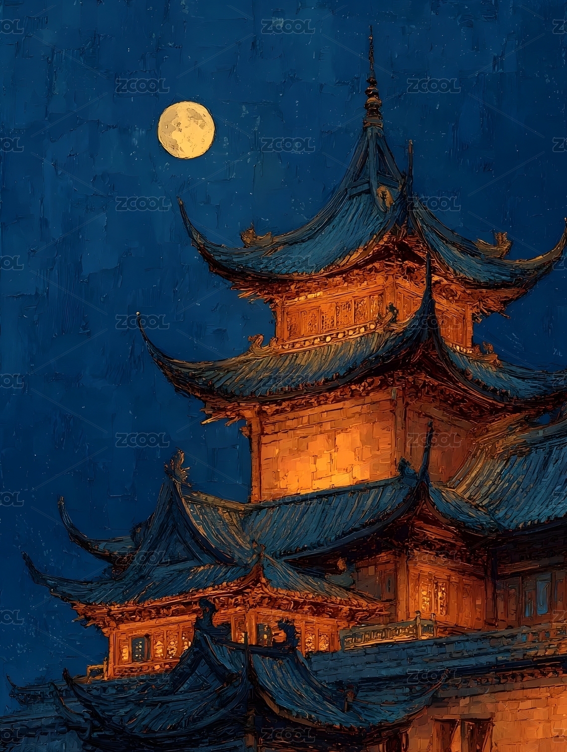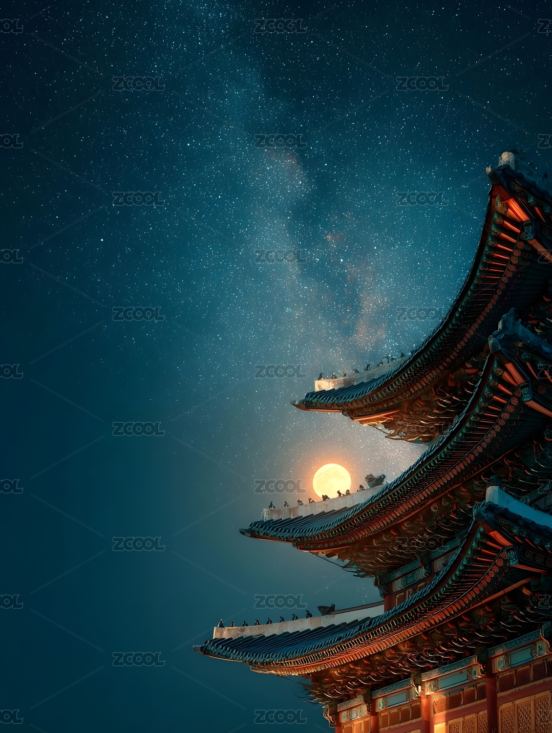 屋顶,月亮,夜晚,装饰,飞檐,建筑,瓦当,传统,古风,屋檐