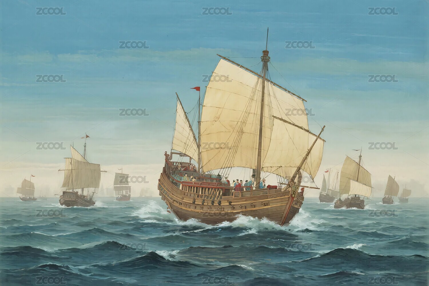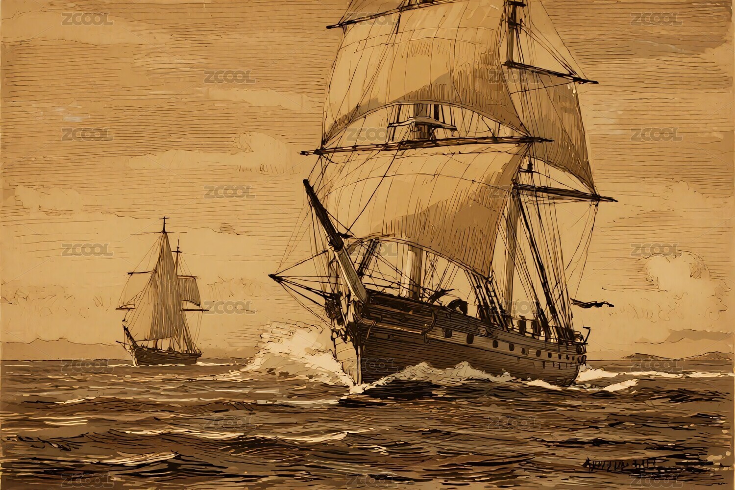 多艘,古典,帆船,线描图,集合,黑白,插画,风格,航海,历史